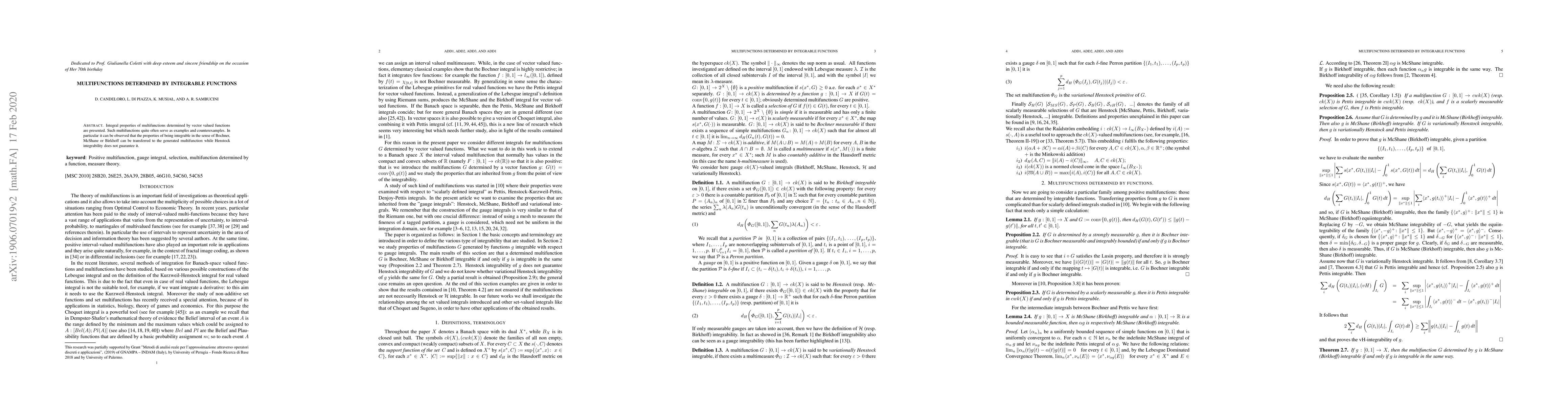 Integral properties of multifunctions determined by vector valued functions are presented. Such multifunctions quite often serve as examples and counterexamples. In particular it can be observed that the properties of being integrable in the sense of Bochner, McShane or Birkhoff can be transferred to the generated multifunction while Henstock integrability does not guarantee it.