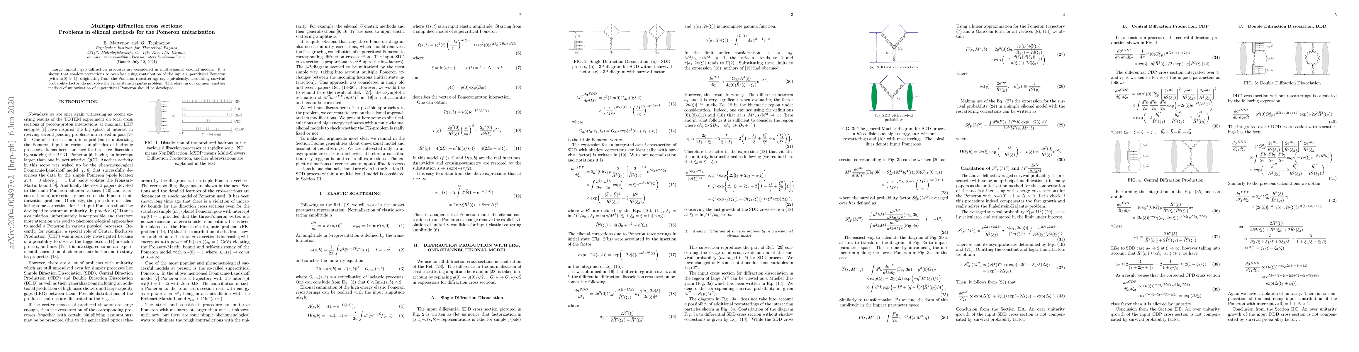 This paper examines large rapidity gap diffraction processes in multi-channel eikonal models, finding that shadow corrections do not resolve the Finkelstein-Kajantie problem for the supercritical pomeron. It concludes that alternative methods for unitarizing the supercritical pomeron are necessary.