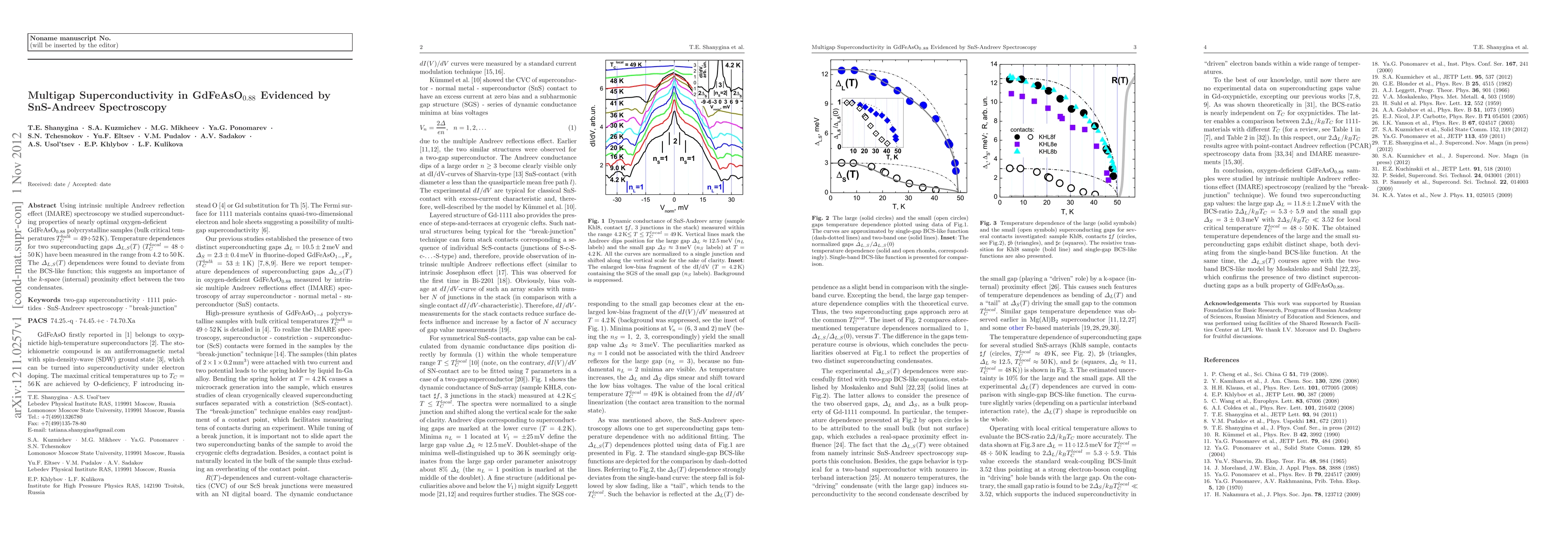 Using intrinsic multiple Andreev reflection effect (IMARE) spectroscopy we studied superconducting properties of nearly optimal oxygen-deficient GdFeAsO$_{0.88}$ polycrystalline samples (bulk critical temperatures $T_C^{bulk} = 49 \div 52$\,K). Temperature dependences for two superconducting gaps $\Delta_{L,S}(T)$ ($T_C^{local} = 48 \div 50$\,K) have been measured in the range from 4.2 to 50\,K. The $\Delta_{L,S}(T)$ dependences were found to deviate from the BCS-like function; this suggests an importance of the $k$-space (internal) proximity effect between the two condensates.