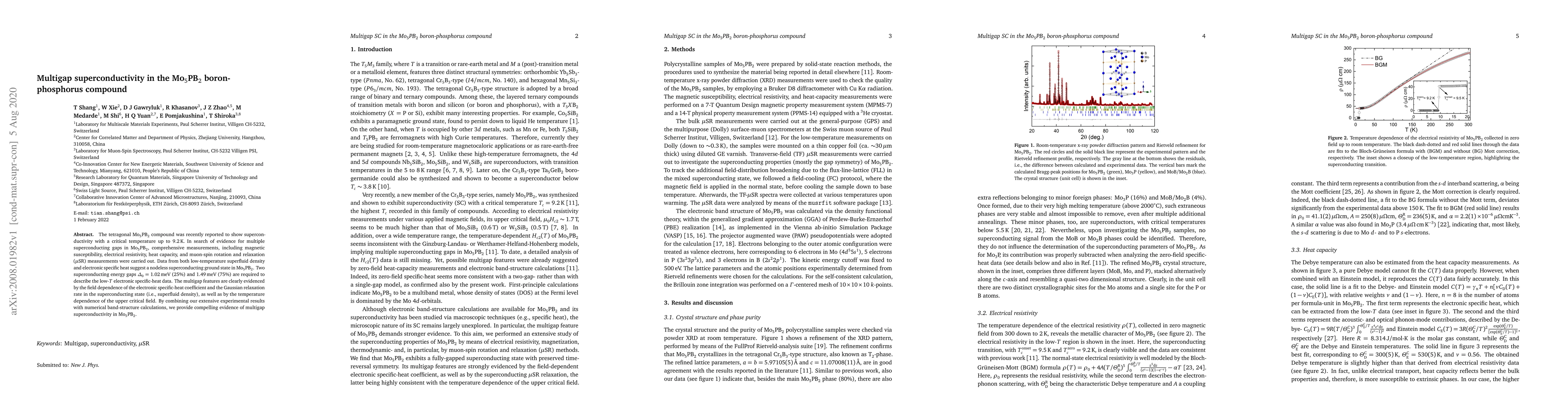 The Mo$_5$PB$_2$ compound exhibits superconductivity up to 9.2 K, with comprehensive measurements revealing multigap superconductivity characterized by two energy gaps of 1.02 meV and 1.49 meV. Experimental and computational evidence supports this multigap feature.