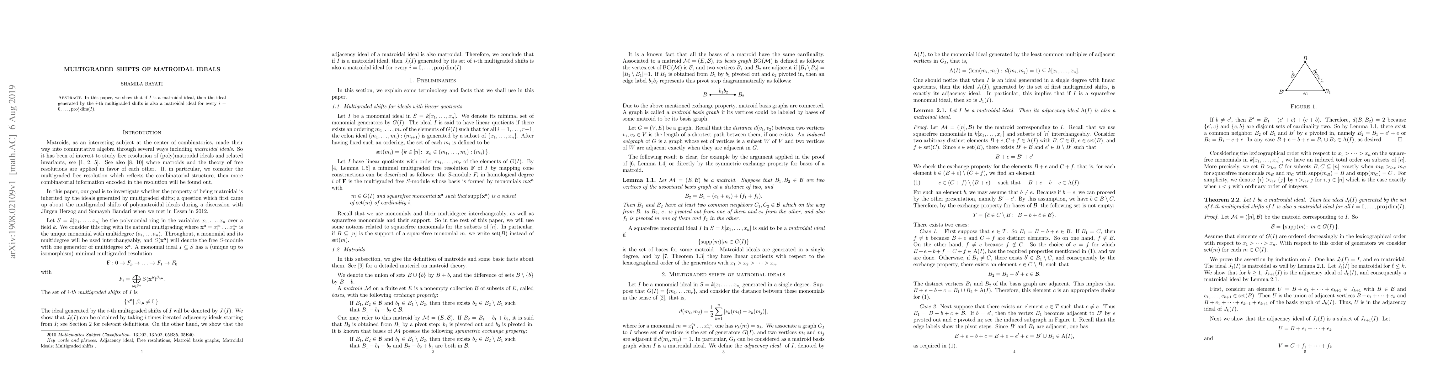 In this paper, we show that if $I$ is a matroidal ideal, then the ideal generated by the $i$-th multigraded shifts is also a matroidal ideal for every $i=0,\ldots,\text{pd}(I)$.