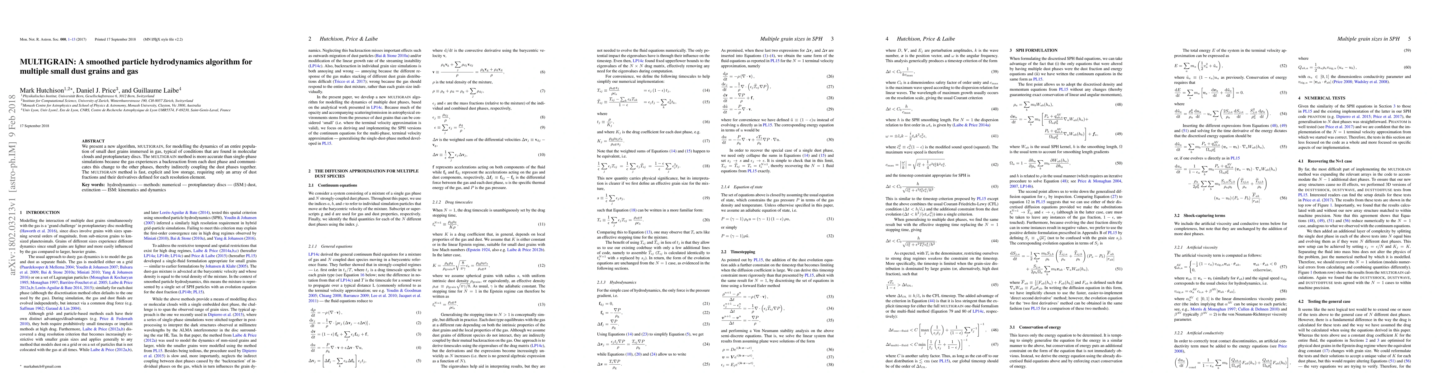Summary: The MULTIGRAIN algorithm models the dynamics of small dust grains in gas, improving accuracy by accounting for gas backreaction on dust phases, and is efficient with low storage requirements. It provides a better coupling between dust phases compared to single-phase simulations.
