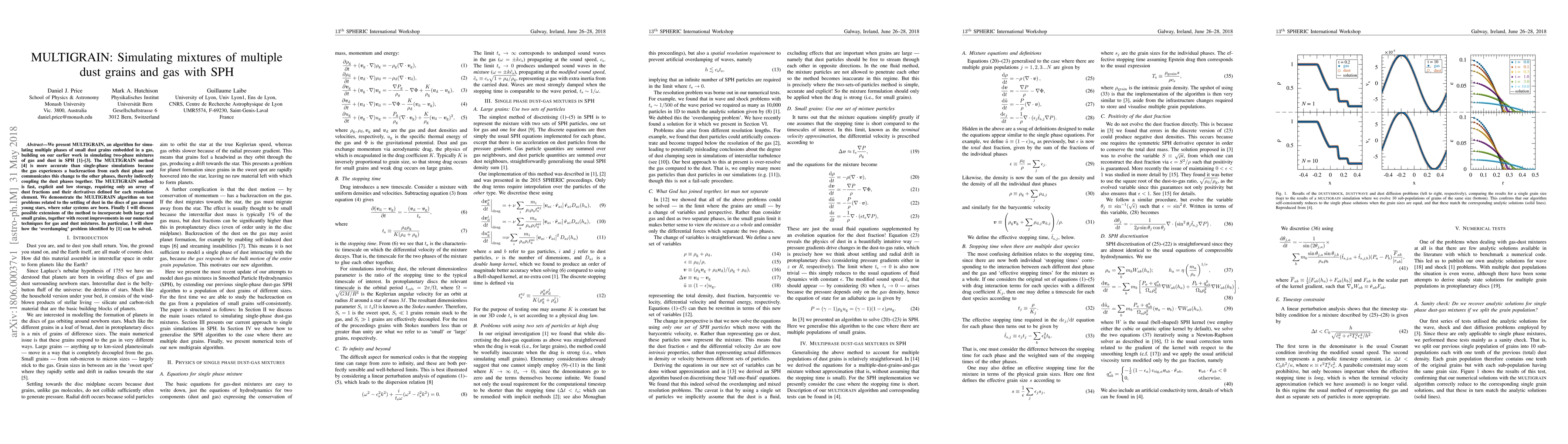 We present MULTIGRAIN, an algorithm for simulating multiple phases of small dust grains embedded in a gas, building on our earlier work in simulating two-phase mixtures of gas and dust in SPH (Laibe & Price 2012a,b; Price & Laibe 2015). The MULTIGRAIN method (Hutchison, Price & Laibe 2018) is more accurate than single-phase simulations because the gas experiences a backreaction from each dust phase and communicates this change to the other phases, thereby indirectly coupling the dust phases together. The MULTIGRAIN method is fast, explicit and low storage, requiring only an array of dust fractions and their derivatives defined for each resolution element. We demonstrate the MULTIGRAIN algorithm on test problems related to the settling of dust in the discs of gas around young stars, where solar systems are born. Finally I will discuss possible extensions of the method to incorporate both large and small grains, together with recent improvements in our numerical techniques for gas and dust mixtures. In particular, I will show how the 'overdamping' problem identified by Laibe & Price (2012a) can be solved.