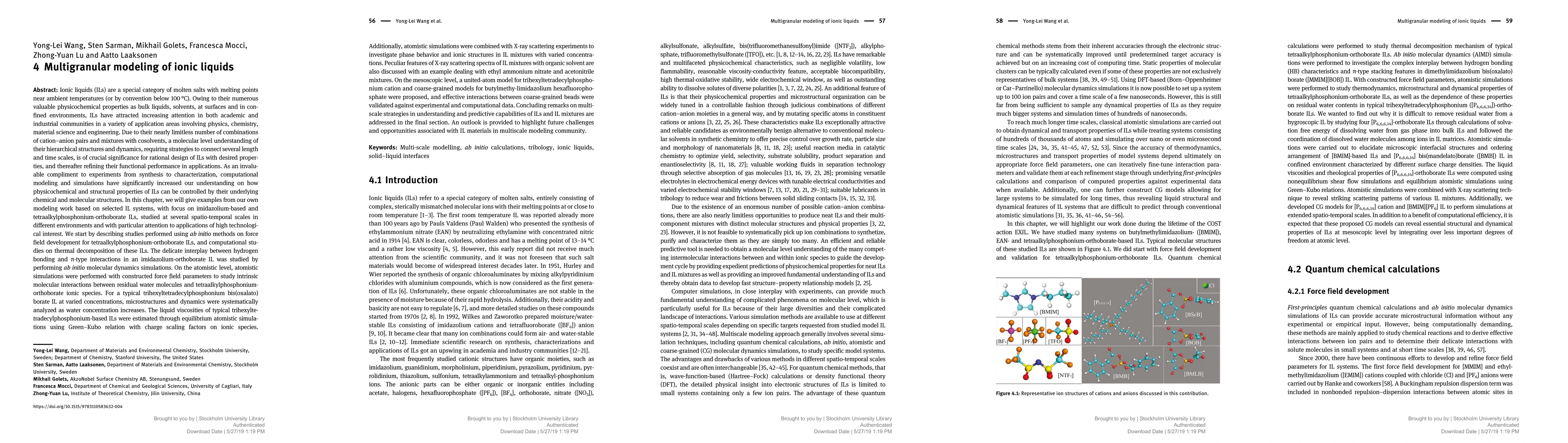 This paper explores the modeling of ionic liquids to understand their hierarchical structures and dynamics, with a focus on designing ILs with desired properties for various applications. It highlights the importance of computational modeling in controlling physicochemical and structural properties of ILs.