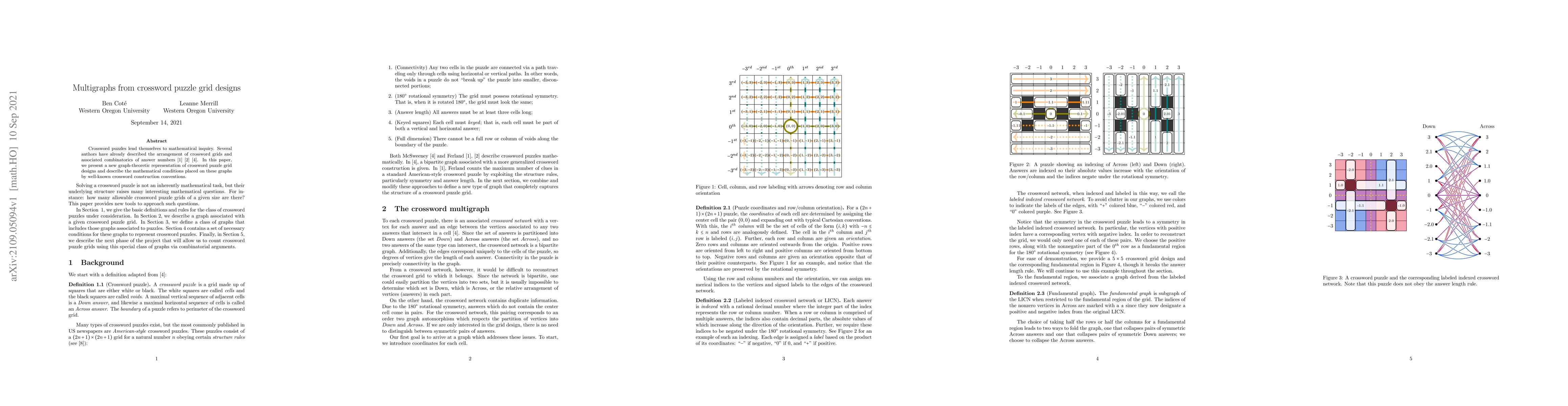 This paper introduces a graph-theoretic model for crossword puzzle grids, exploring the mathematical conditions these designs must satisfy under standard crossword construction rules. The study aims to deepen the understanding of crossword grid combinatorics through graph theory.