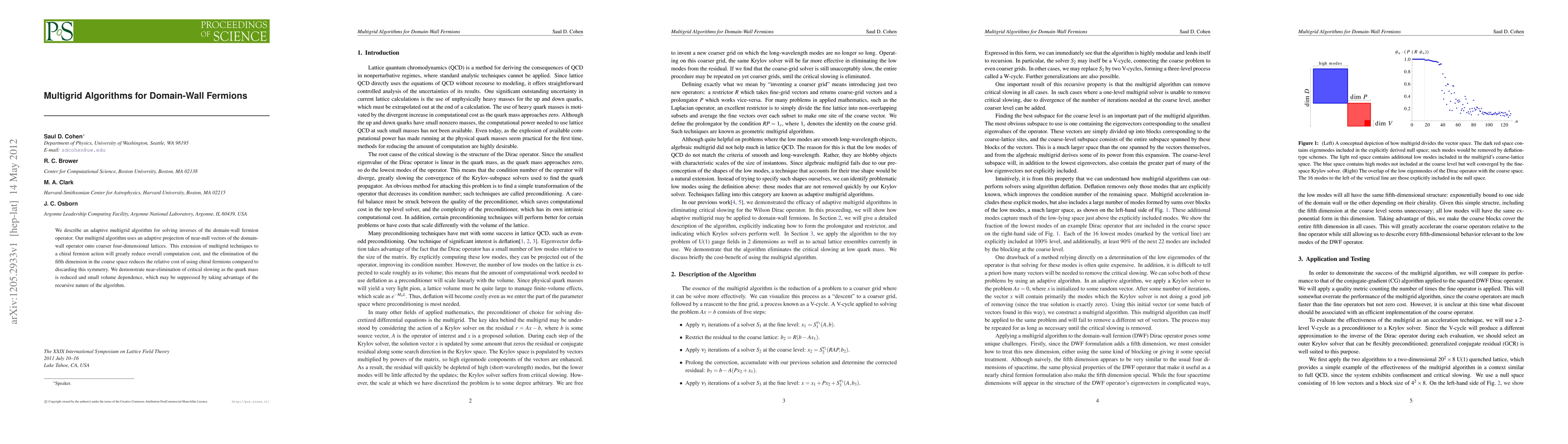 The paper presents an adaptive multigrid algorithm for efficiently solving inverses of domain-wall fermion operators, leveraging coarser four-dimensional lattices to reduce computational costs. The method effectively minimizes critical slowing and exhibits small volume dependence, enhancing the use of chiral fermions.