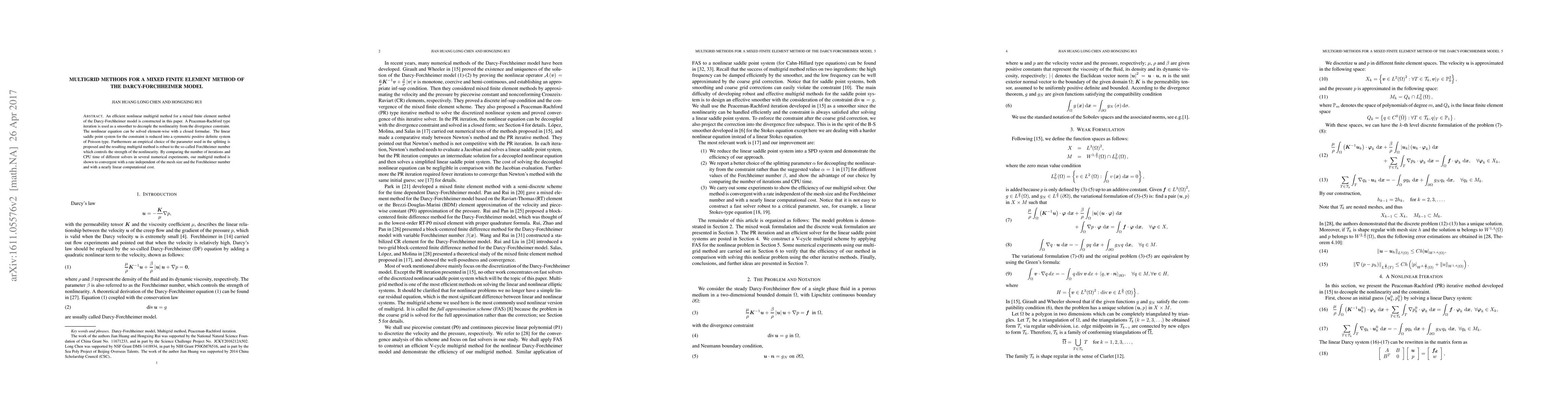 This paper constructs an efficient multigrid method for solving the mixed finite element formulation of the Darcy-Forchheimer model, employing a Peaceman-Rachford iteration as a smoother. The method demonstrates robustness and convergence rate independence of mesh size and nonlinearity strength, achieving nearly linear computational cost.