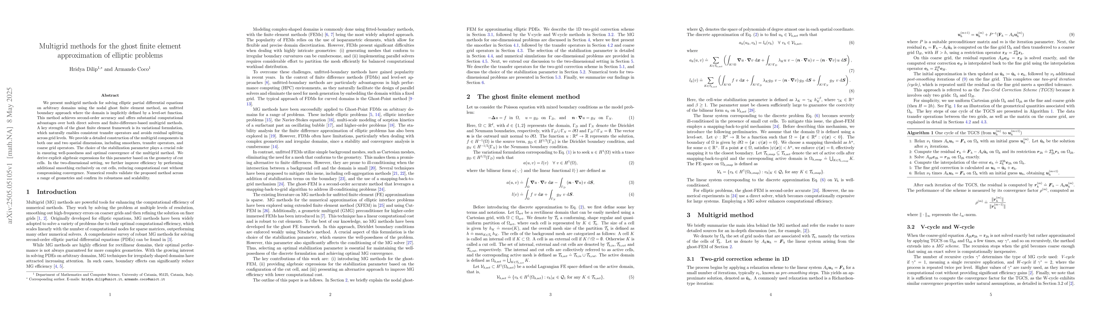 This paper introduces multigrid methods for solving elliptic PDEs using the ghost finite element method, which handles arbitrary domains via an unfitted boundary approach. The method achieves second-order accuracy and computational efficiency, with a focus on the stabilization parameter's role in ensuring convergence and employing additional smoothing on cut cells for efficiency.