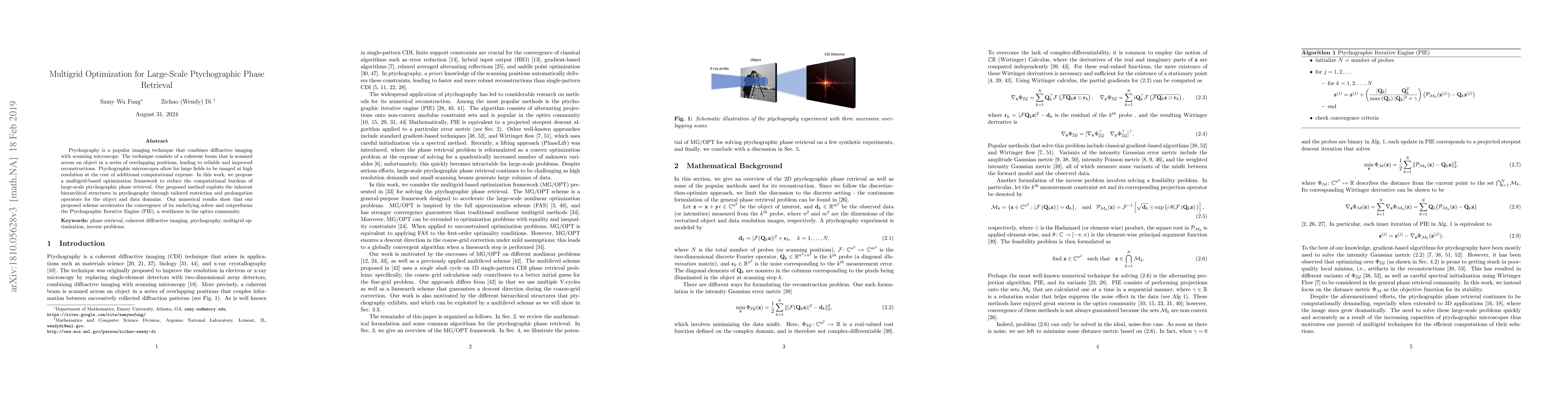 This paper proposes a multigrid optimization framework to reduce computational costs for large-scale ptychographic phase retrieval, leveraging hierarchical structures with tailored operators. The method accelerates convergence and outperforms the Ptychographic Iterative Engine (PIE) in numerical results.