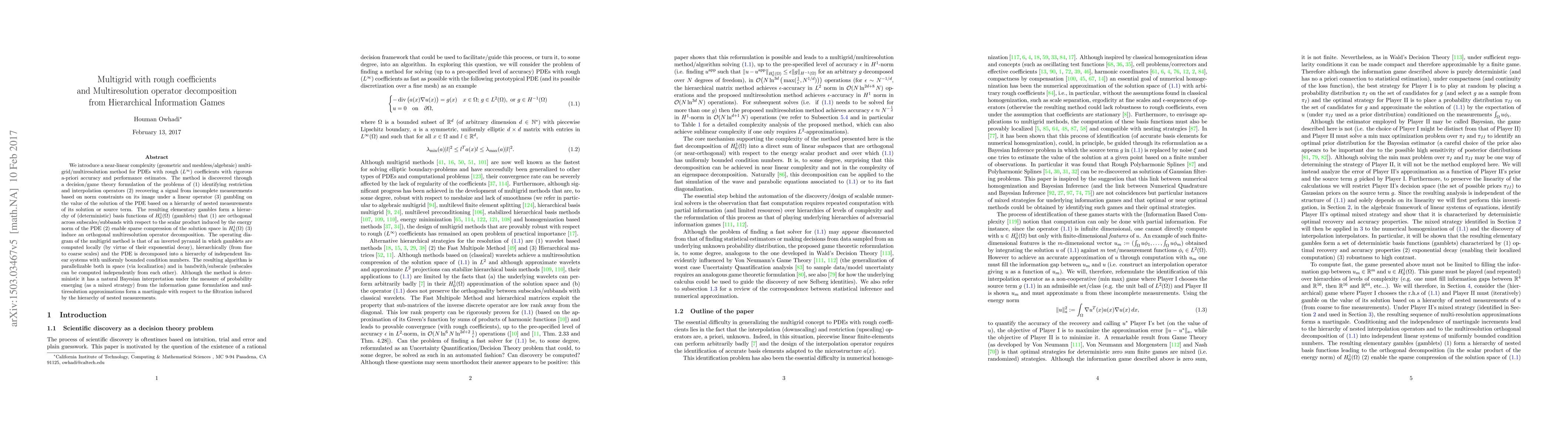 Researchers developed a new multigrid method for solving partial differential equations (PDEs) with rough coefficients, using a game theory formulation that ensures near-linear complexity and rigorous accuracy. The method can be parallelized both in space and bandwidth.