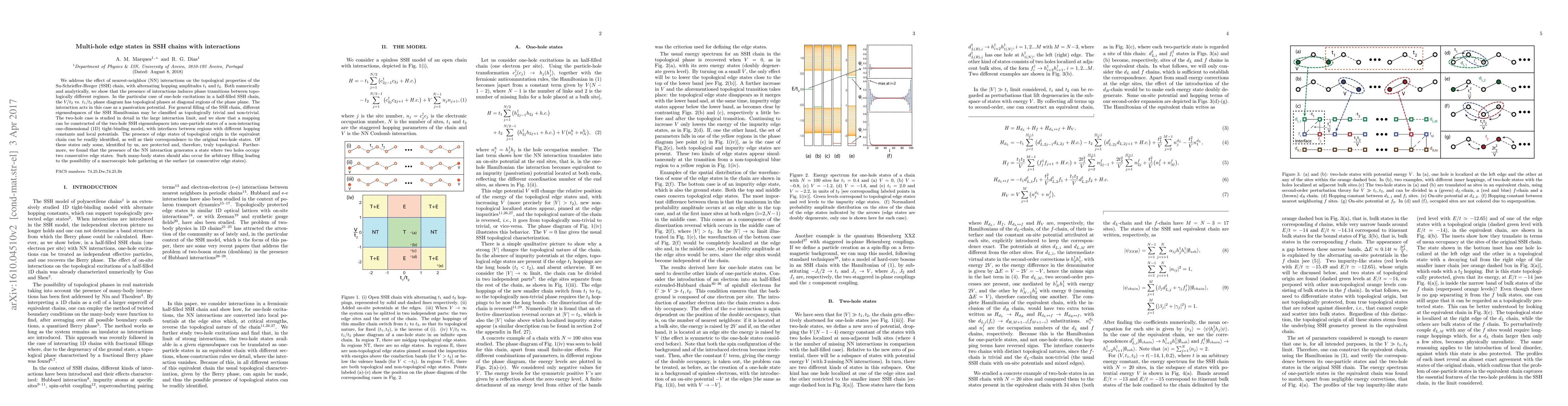 This paper investigates the impact of nearest-neighbor interactions on the topological properties of Su-Schrieffer-Heeger (SSH) chains, revealing phase transitions between topologically distinct regimes. It demonstrates that interactions induce topological edge states, particularly in the case of two-hole excitations, where a macroscopic hole gathering at consecutive edge states is possible.