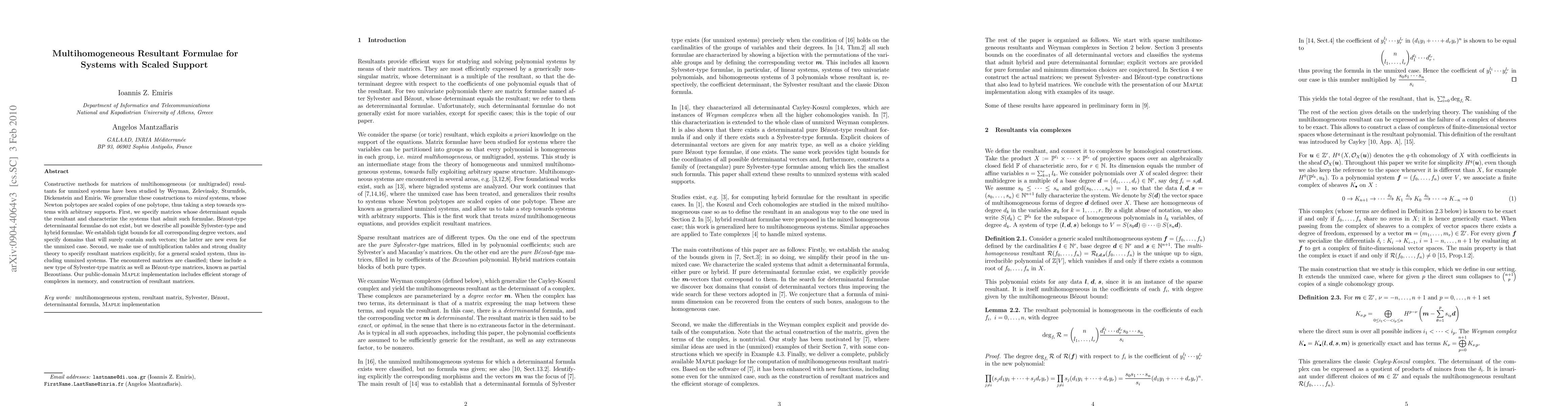 This paper generalizes the construction of multihomogeneous resultant matrices for mixed systems with scaled support, providing determinantal formulae for such systems and establishing tight bounds for degree vectors. It introduces new types of Sylvester-type matrices and partial Bezoutians, and includes a Maple implementation for efficient resultant matrix computation.