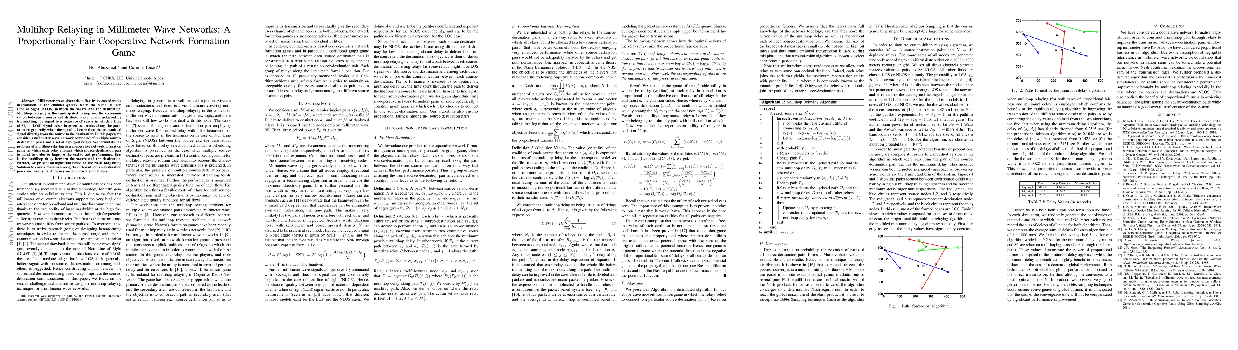 This paper explores multihop relaying in millimeter wave networks to enhance communication quality, especially in Non Line of Sight conditions. It formulates the problem as a cooperative network formation game, aiming to optimize relay selection for improved end-to-end performance, and proposes a Nash Bargaining Solution-based algorithm to ensure proportional fairness among source-destination pairs.