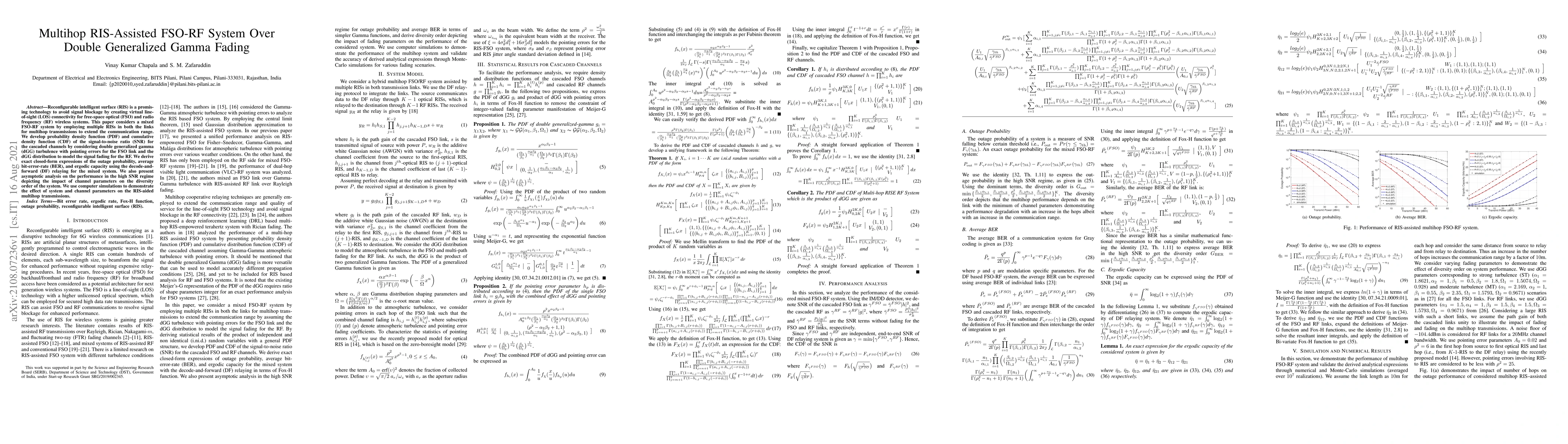 The paper presents a comprehensive statistical analysis of cascaded FSO and RF channels, leading to closed-form expressions for key performance metrics of a multihop RIS-assisted mixed FSO-RF system.