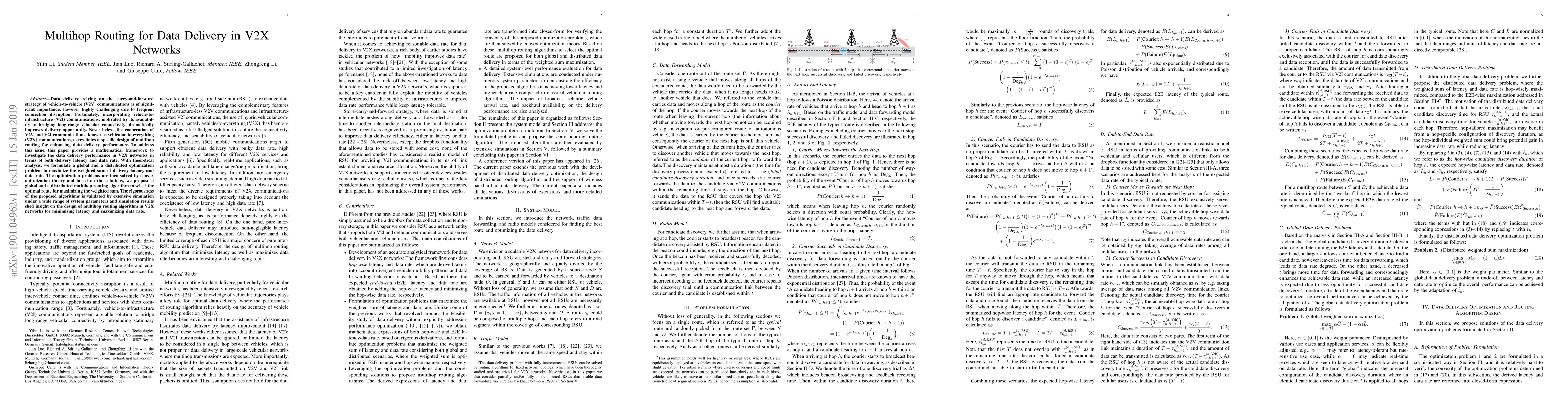 This paper proposes a multihop routing algorithm for V2X networks to optimize data delivery performance by minimizing latency and maximizing data rate, offering insights into the design of such algorithms in future vehicular communication systems.