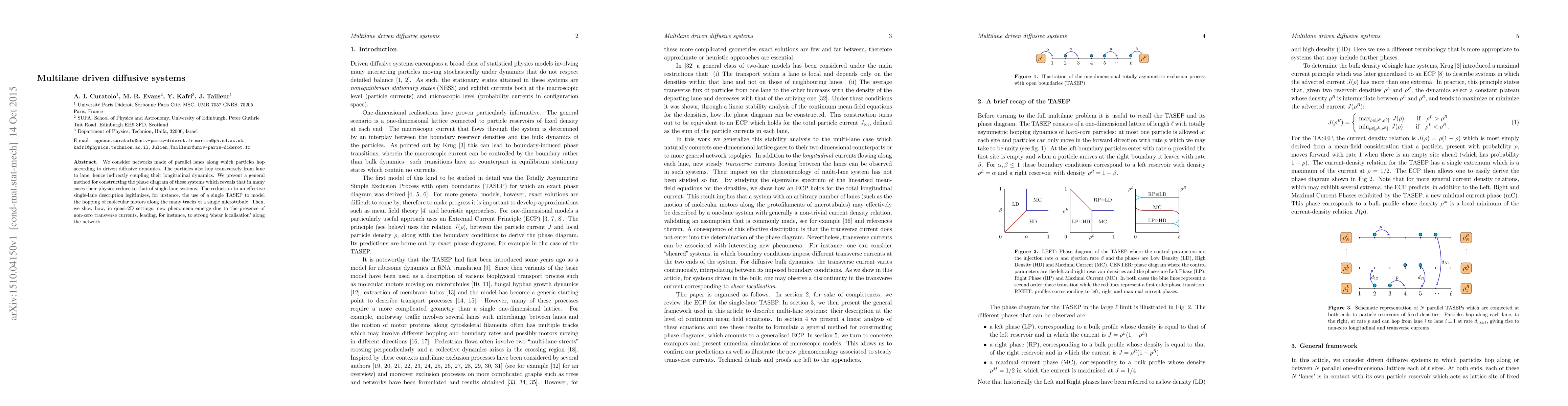 This paper explores networks of parallel lanes with particles hopping according to driven diffusive dynamics, revealing that many multilane systems can be effectively modeled as single-lane systems. However, in quasi-2D settings, non-zero transverse currents lead to new phenomena like shear localization.