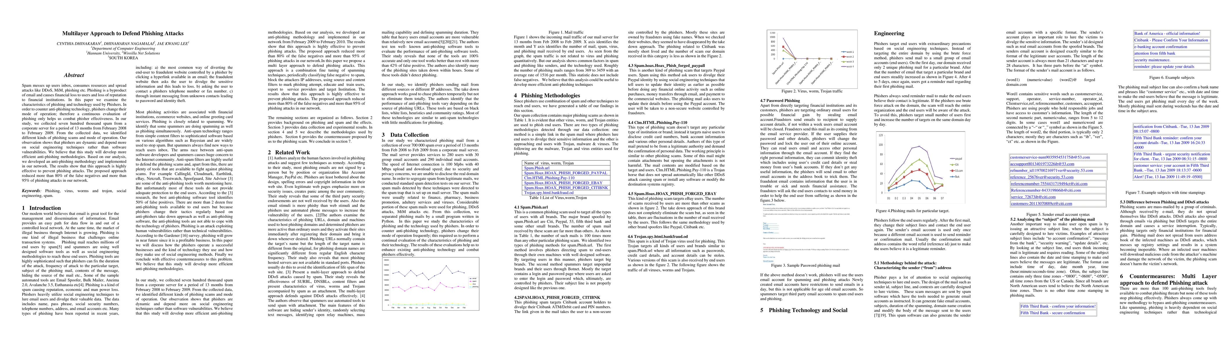 Spam messes up users inbox, consumes resources and spread attacks like DDoS, MiM, phishing etc. Phishing is a byproduct of email and causes financial loss to users and loss of reputation to financial institutions. In this paper we examine the characteristics of phishing and technology used by Phishers. In order to counter anti-phishing technology, phishers change their mode of operation; therefore a continuous evaluation of phishing only helps us combat phisher effectiveness. In our study, we collected seven hundred thousand spam from a corporate server for a period of 13 months from February 2008 to February 2009. From the collected data, we identified different kinds of phishing scams and mode of operation. Our observation shows that phishers are dynamic and depend more on social engineering techniques rather than software vulnerabilities. We believe that this study will develop more efficient anti-phishing methodologies. Based on our analysis, we developed an anti-phishing methodology and implemented in our network. The results show that this approach is highly effective to prevent phishing attacks. The proposed approach reduced more than 80% of the false negatives and more than 95% of phishing attacks in our network.