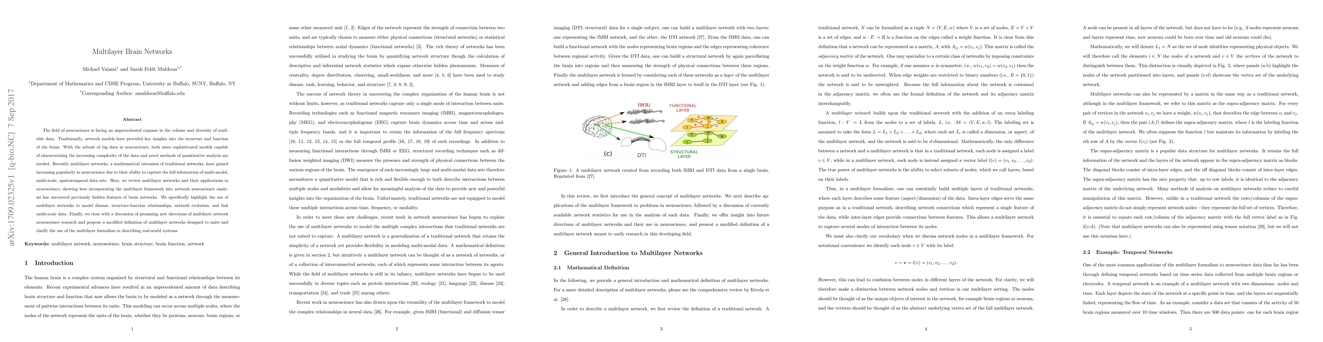 This paper reviews the application of multilayer networks in neuroscience, highlighting their use in modeling complex brain data, disease, structure-function relationships, and multi-scale data integration. It proposes new directions for research and a refined definition to clarify the multilayer formalism.