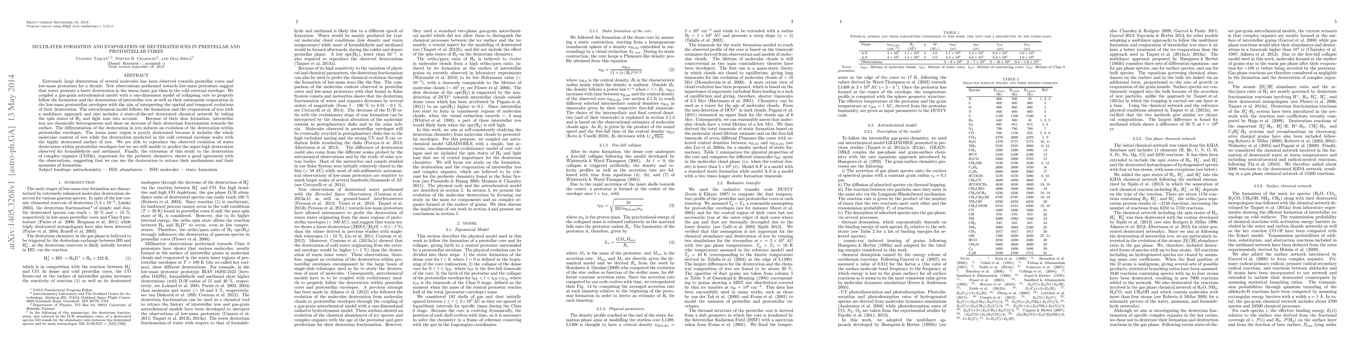 This study combines a gas-grain astrochemical model with a collapsing core model to investigate the formation and deuteration of interstellar ices in prestellar and protostellar cores, revealing that the deuteration of water is lower in warm inner regions compared to cold outer envelopes. Despite reproducing the observed evolution of water deuteration, the model cannot yet explain the super-high deuteration of formaldehyde and methanol, though it shows promise in tracing the formation mechanisms of complex organic molecules.