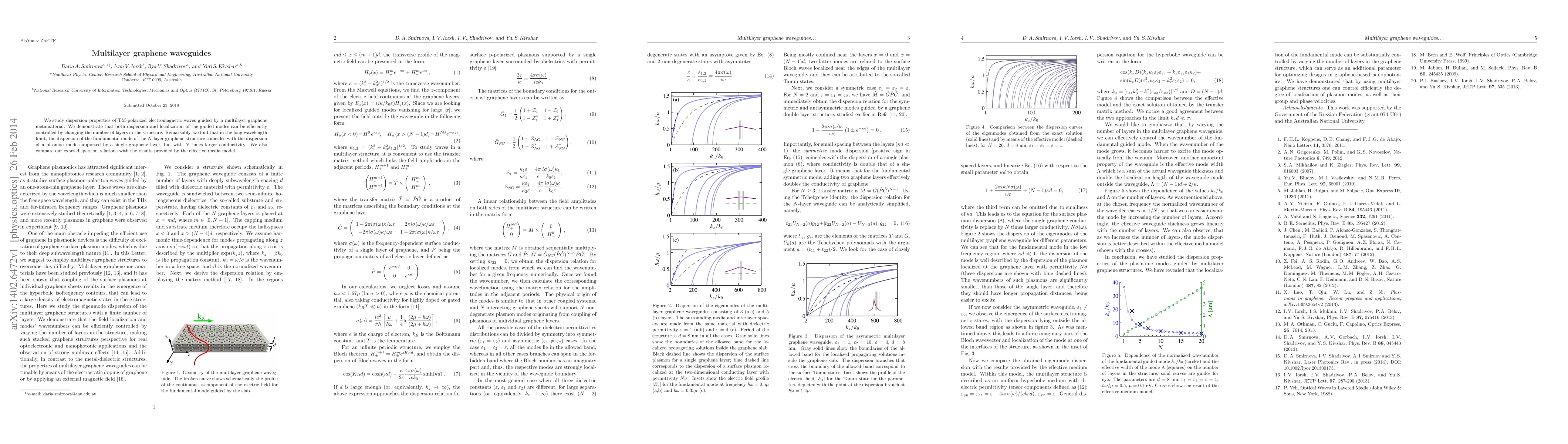 Researchers studied dispersion properties of electromagnetic waves guided by multilayer graphene metamaterials, finding that the number of layers can control wave behavior and conductivity.