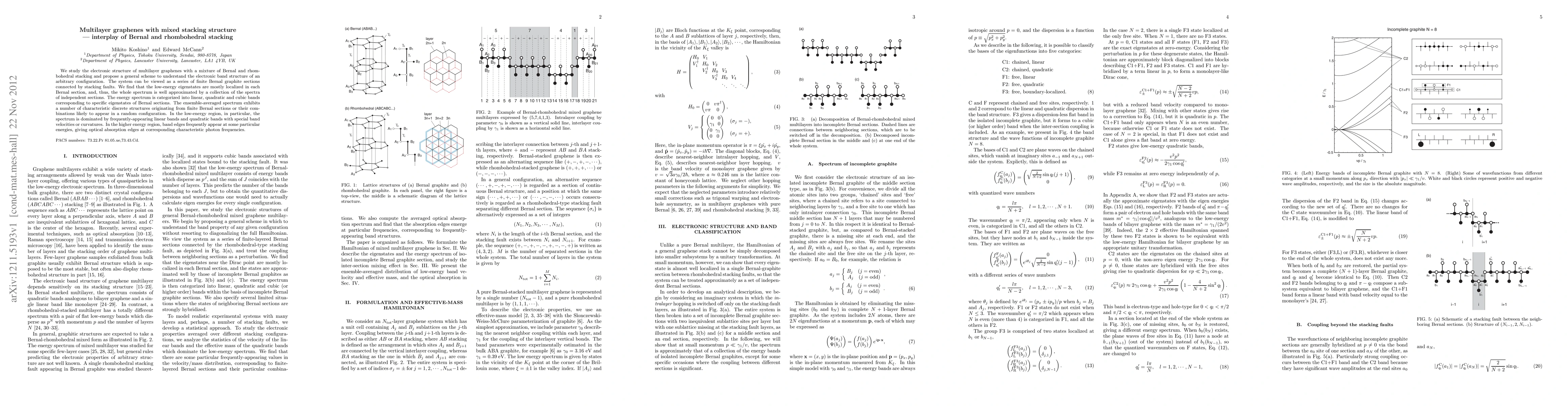 This paper investigates the electronic structure of multilayer graphenes with mixed Bernal and rhombohedral stacking, proposing a scheme to understand their band structure. It reveals that low-energy eigenstates are localized in Bernal sections, leading to a spectrum characterized by linear, quadratic, and cubic bands, with distinct optical absorption edges at specific photon frequencies.