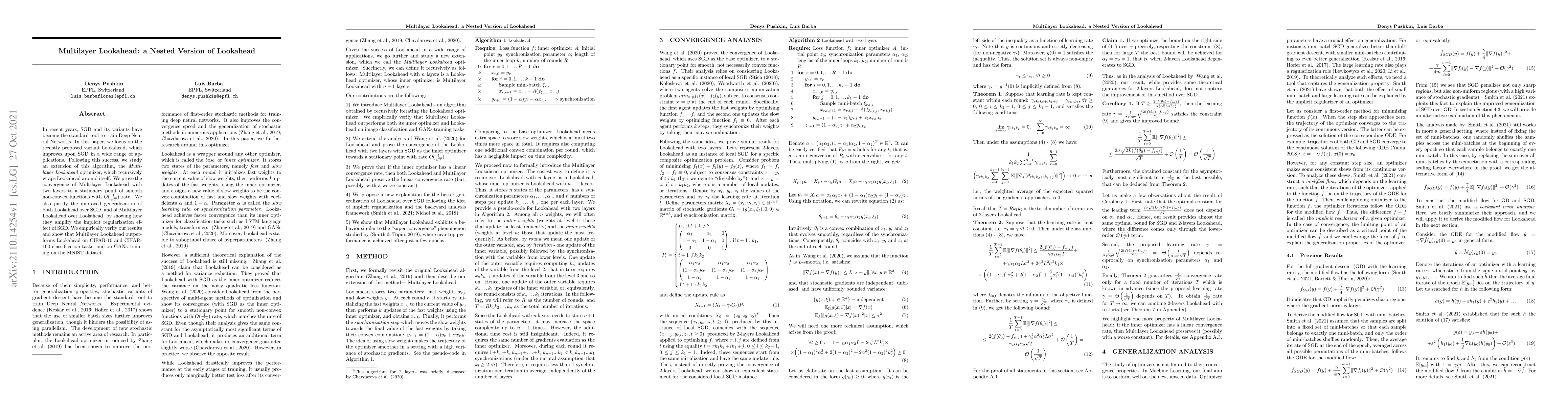The paper proposes and analyzes the Multilayer Lookahead optimizer, an extension of the Lookahead algorithm, which recursively wraps Lookahead around itself. It focuses on proving convergence and demonstrating improved generalization over SGD and Lookahead.