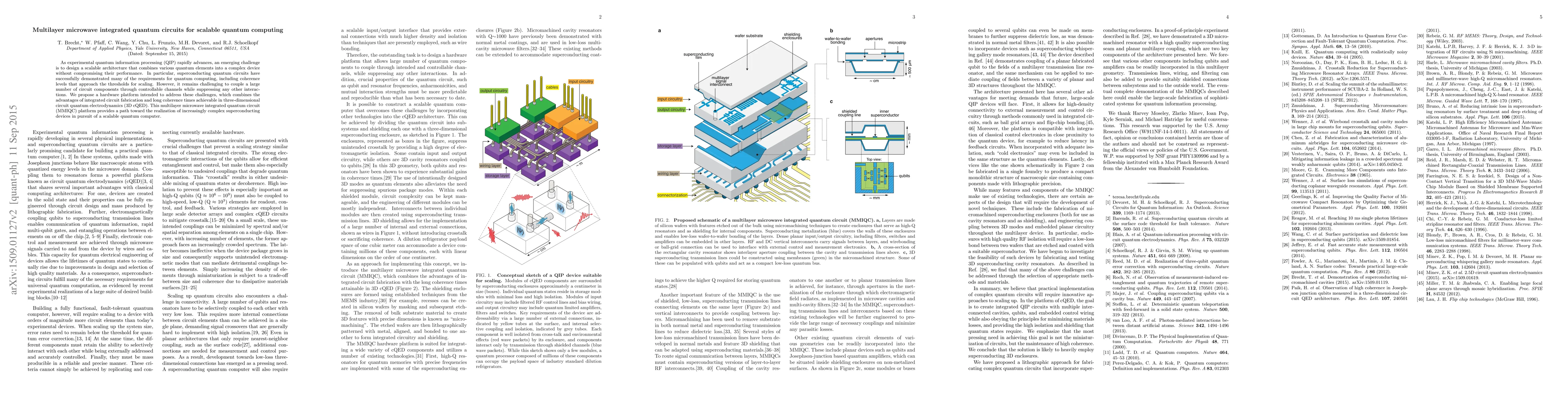 This paper proposes a multilayer microwave integrated quantum circuit (MMIQC) platform to address the scalability challenges in quantum computing by combining integrated circuit fabrication with long coherence times from 3D circuit quantum electrodynamics, aiming to couple multiple quantum circuit components efficiently. The MMIQC platform seeks to advance the development of complex superconducting devices for scalable quantum computers.