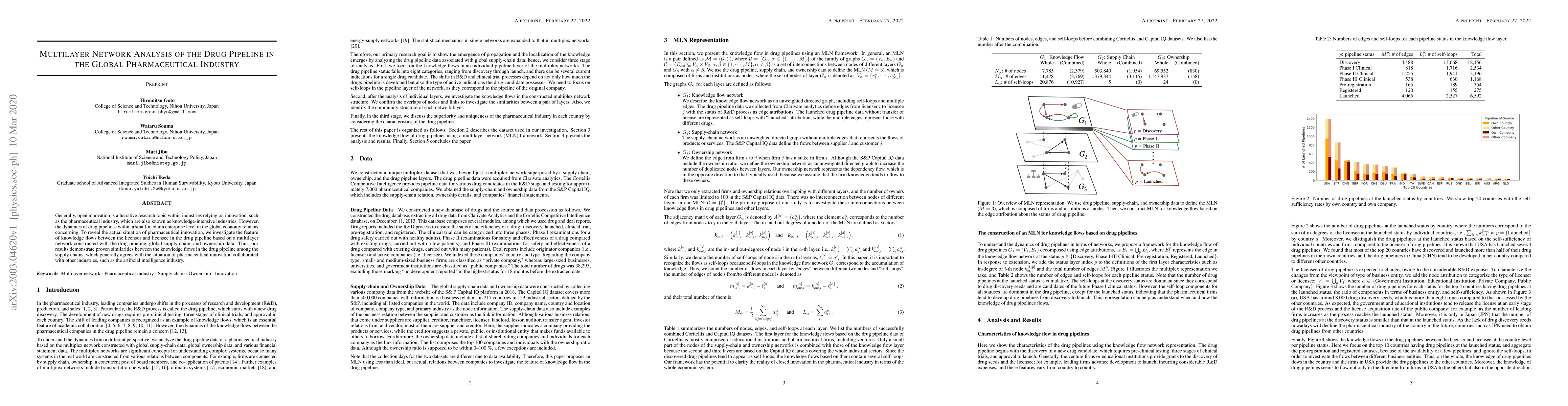 This paper analyzes the multilayer network of the global pharmaceutical industry's drug pipeline, focusing on knowledge flows between licensors and licensees. It reveals similarities in knowledge flows among supply chains, aligning with pharmaceutical innovation collaborations, particularly with artificial intelligence.