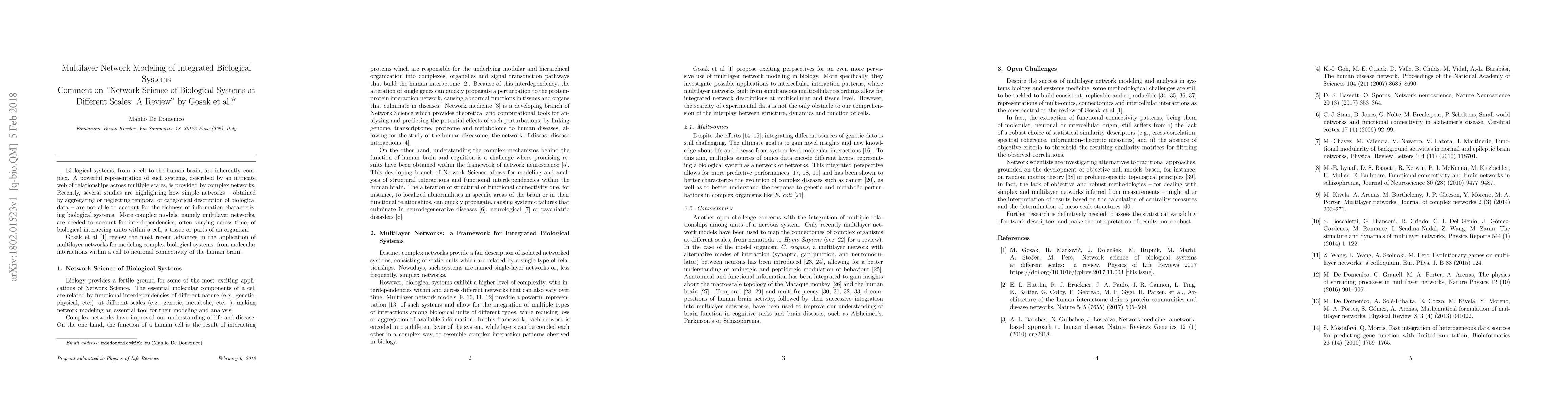 Biological systems, from a cell to the human brain, are inherently complex. A powerful representation of such systems, described by an intricate web of relationships across multiple scales, is provided by complex networks. Recently, several studies are highlighting how simple networks -- obtained by aggregating or neglecting temporal or categorical description of biological data -- are not able to account for the richness of information characterizing biological systems. More complex models, namely multilayer networks, are needed to account for interdependencies, often varying across time, of biological interacting units within a cell, a tissue or parts of an organism.