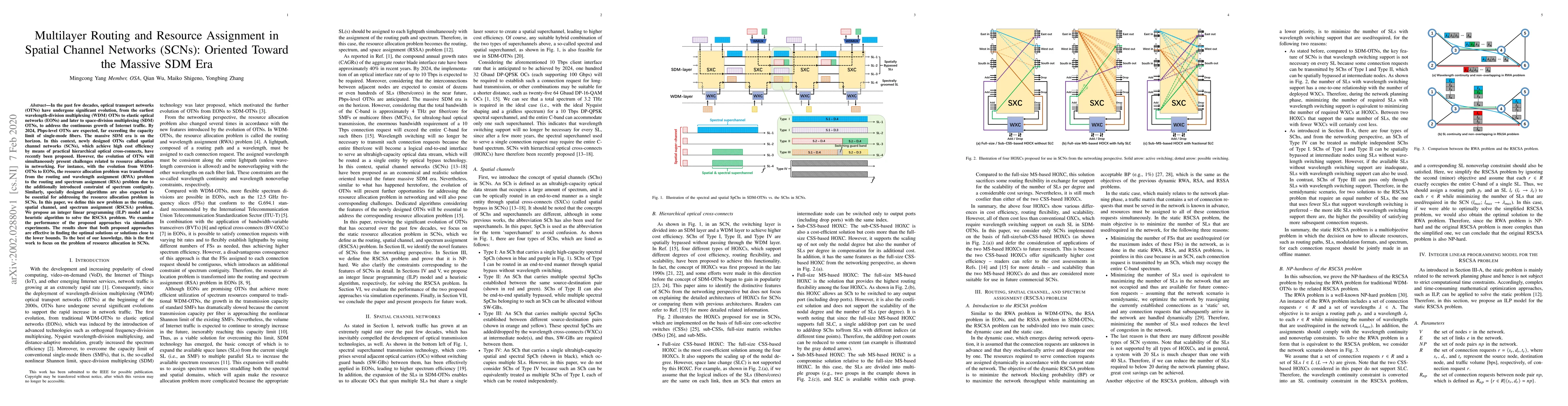 This paper introduces the routing, spatial channel, and spectrum assignment (RSCSA) problem in spatial channel networks (SCNs) to address the resource allocation challenges of the massive SDM era. It proposes an integer linear programming model and a heuristic algorithm to solve the RSCSA problem, demonstrating their effectiveness through simulation experiments.