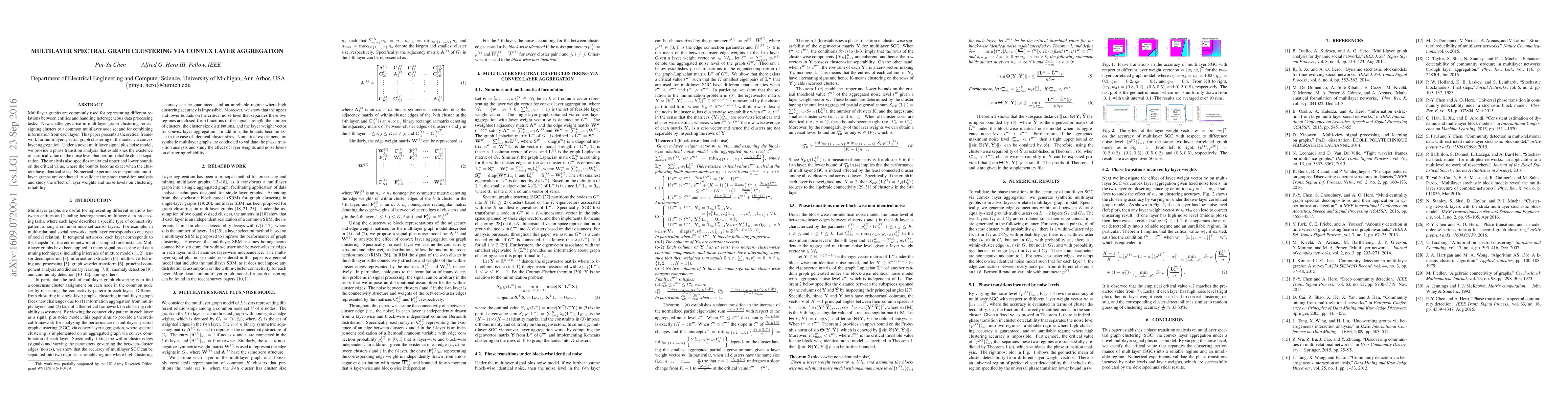 This paper introduces a theoretical framework for multilayer spectral graph clustering using convex layer aggregation, analyzing a novel signal plus noise model to determine a critical noise level for reliable cluster separation. Numerical experiments validate the theoretical phase transition analysis and explore the impact of layer weights and noise levels on clustering performance.