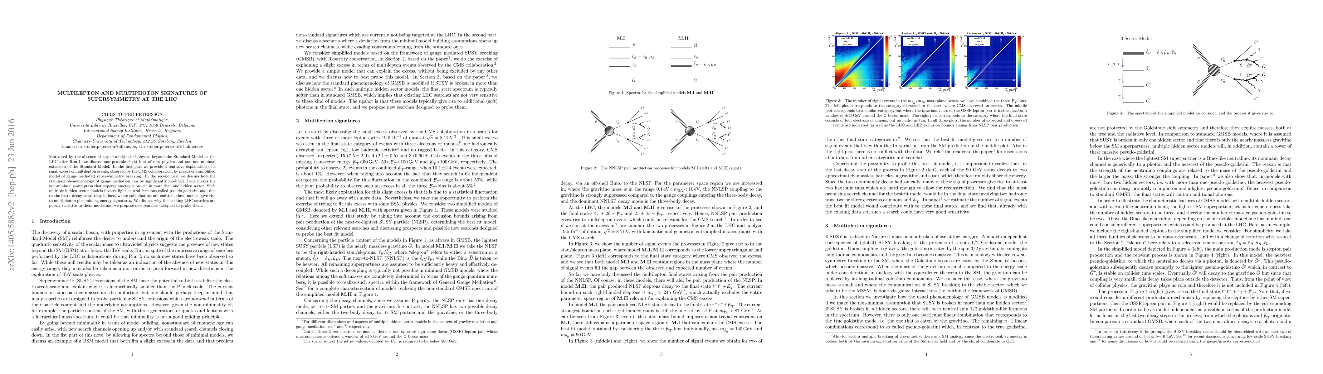 Motivated by the absence of any clear signal of physics beyond the Standard Model at the LHC after Run I, we discuss one possible slight hint of new physics and one non-minimal extension of the Standard Model. In the first part we provide a tentative explanation of a small excess of multilepton events, observed by the CMS collaboration, by means of a simplified model of gauge mediated supersymmetry breaking. In the second part we discuss how the standard phenomenology of gauge mediation can be significantly modified if one makes the non-minimal assumption that supersymmetry is broken in more than one hidden sector. Such multiple hidden sector models involve light neutral fermions called pseudo-goldstini and, due to the extra decay steps they induce, where soft photons are emitted, these models give rise to multiphoton plus missing energy signatures. We discuss why the existing LHC searches are poorly sensitive to these model and we propose new searches designed to probe them.