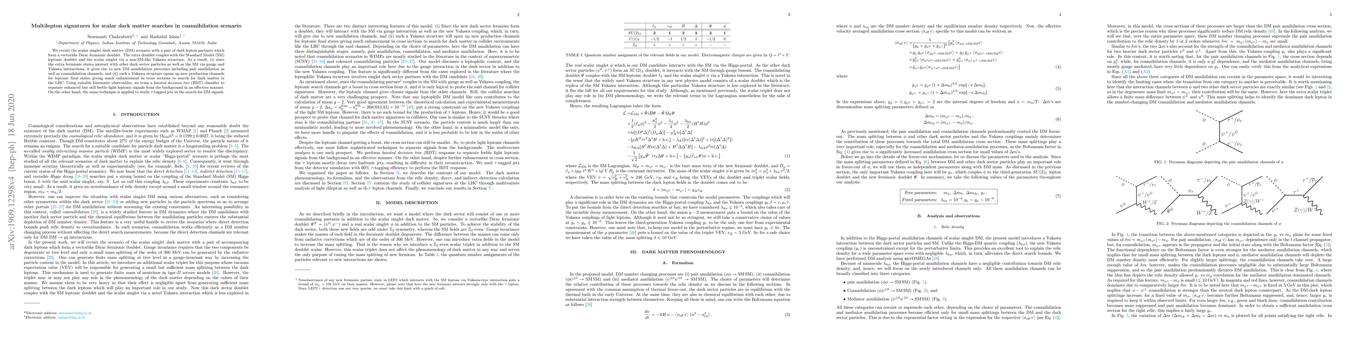 This paper explores scalar singlet dark matter with a vectorlike Dirac fermionic doublet of dark lepton partners, enhancing annihilation and coannihilation processes via gauge and Yukawa interactions. The study employs a boosted decision tree classifier to effectively distinguish these signals from backgrounds in LHC searches, focusing on multilepton signatures and $\tau$-tagged jets.