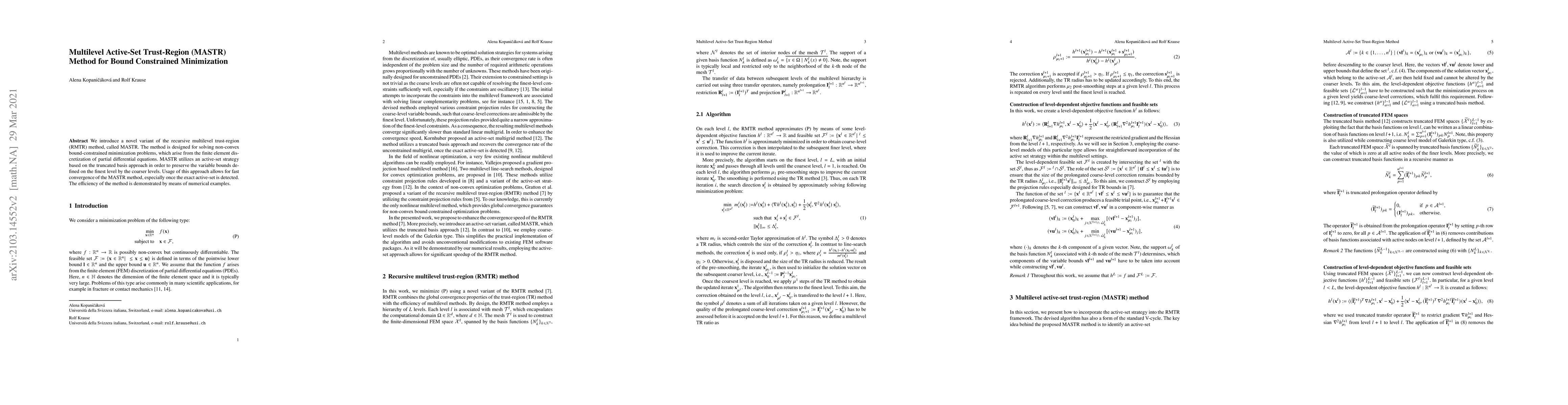 The MASTR method is a novel recursive multilevel trust-region approach for solving non-convex bound-constrained minimization problems, particularly in finite element discretizations of PDEs. It employs an active-set strategy based on the truncated basis to maintain variable bounds, leading to fast convergence once the exact active-set is identified, as shown by numerical examples.