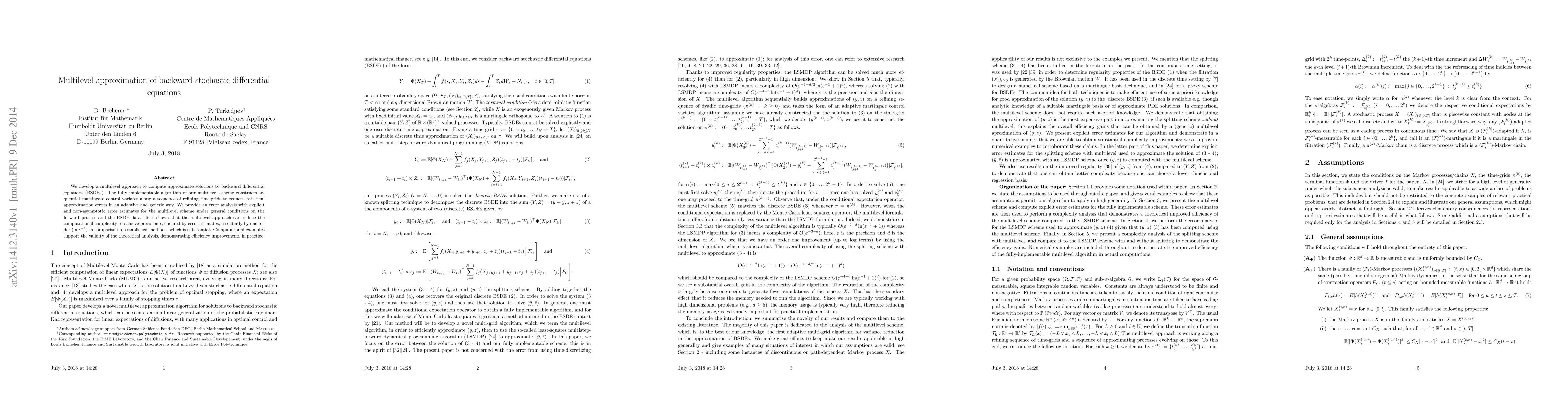 We develop a multilevel approach to compute approximate solutions to backward differential equations (BSDEs). The fully implementable algorithm of our multilevel scheme constructs sequential martingale control variates along a sequence of refining time-grids to reduce statistical approximation errors in an adaptive and generic way. We provide an error analysis with explicit and non-asymptotic error estimates for the multilevel scheme under general conditions on the forward process and the BSDE data. It is shown that the multilevel approach can reduce the computational complexity to achieve precision $\epsilon$, ensured by error estimates, essentially by one order (in $\epsilon^{-1}$) in comparison to established methods, which is substantial. Computational examples support the validity of the theoretical analysis, demonstrating efficiency improvements in practice.