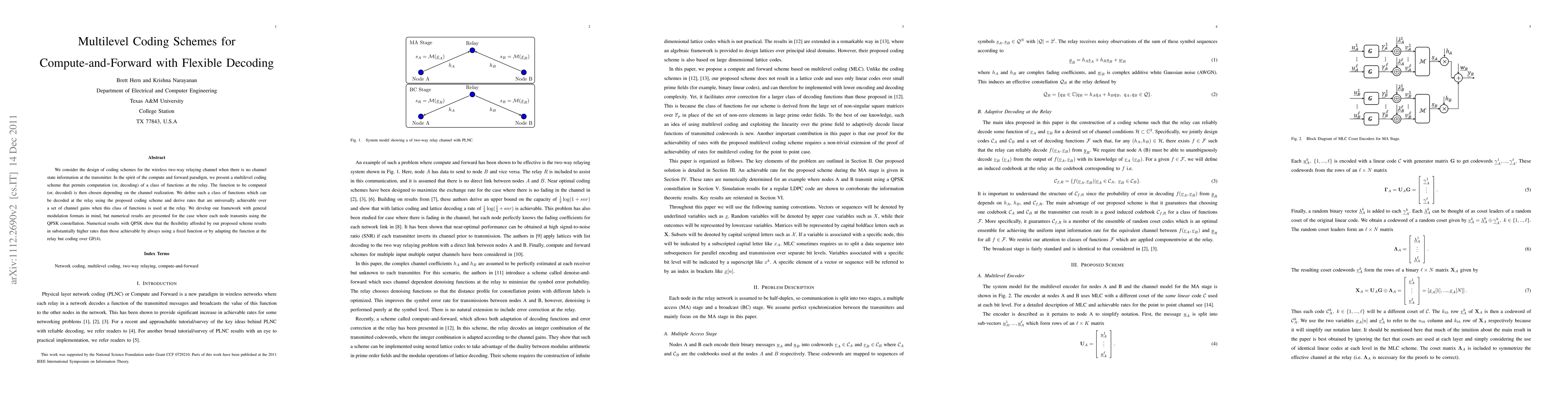 This paper proposes a multilevel coding scheme for the compute-and-forward paradigm in wireless two-way relaying without channel state information at the transmitter. The scheme allows flexible decoding of various functions at the relay, leading to higher achievable rates compared to fixed or adaptive function approaches.