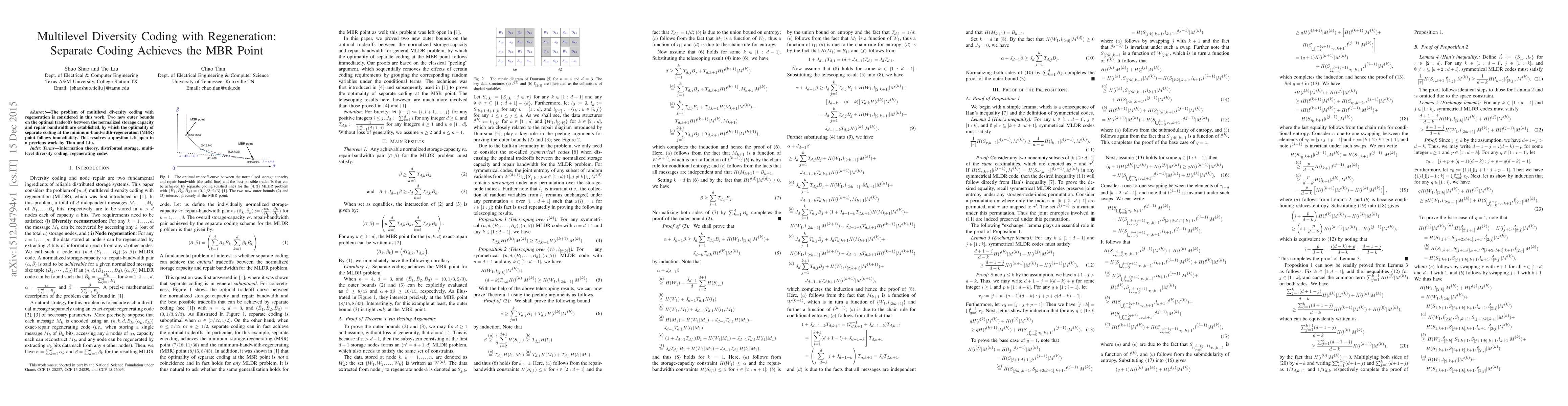 New bounds on optimal tradeoffs between storage capacity and repair bandwidth are established for multilevel diversity coding with regeneration, resolving a question left open in previous work and demonstrating the optimality of separate coding at the minimum-bandwidth-regeneration point.