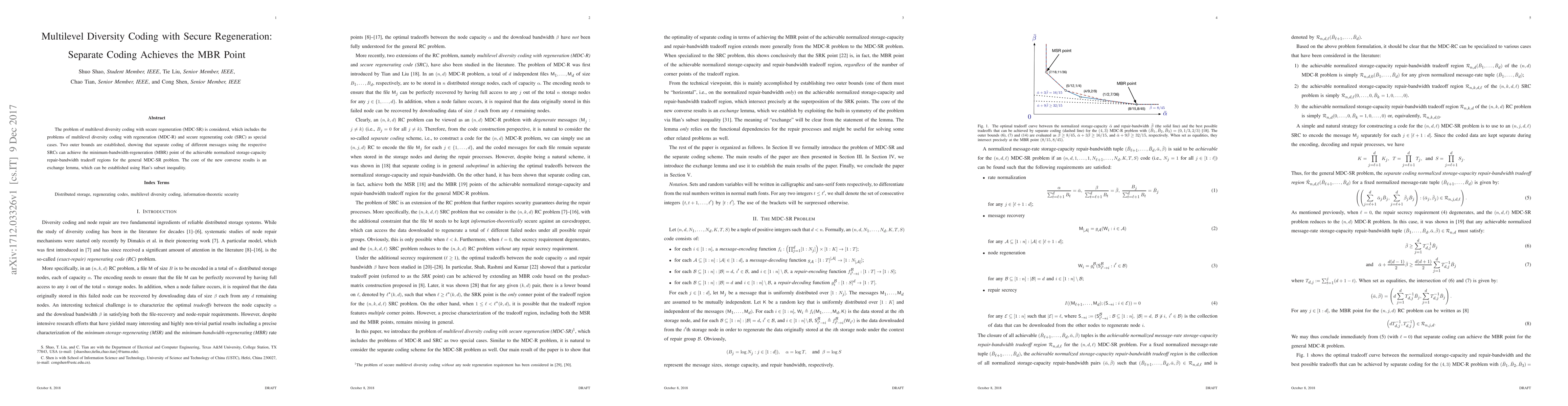 Researchers establish outer bounds for separate coding in multilevel diversity coding with secure regeneration, achieving the minimum-bandwidth-regeneration point in storage-capacity repair-bandwidth tradeoff regions.