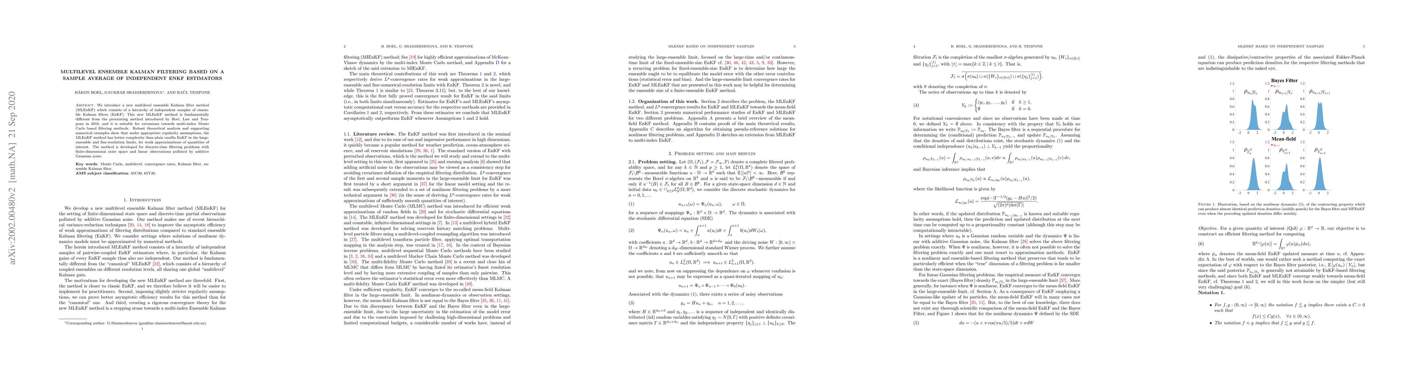 This paper proposes a new multilevel ensemble Kalman filter (MLEnKF) method, which employs a hierarchy of independent ensemble Kalman filters. The MLEnKF method demonstrates better complexity than traditional EnKF, especially for weak approximations, and is suitable for extensions to multi-index Monte Carlo filtering. The method is designed for discrete-time filtering problems with linear observations and Gaussian noise.