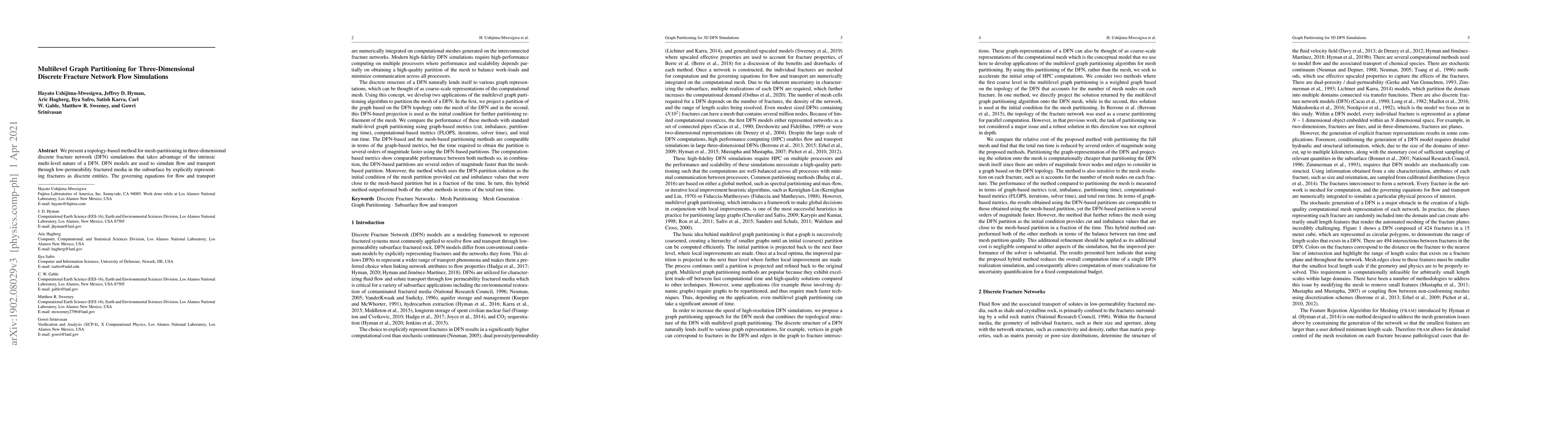 This paper introduces a topology-based multilevel graph partitioning method for three-dimensional discrete fracture network simulations, achieving significantly faster partitioning times compared to standard methods. The proposed method projects DFN topology onto the mesh and refines it, outperforming both DFN-based and mesh-based partitioning in total run time.