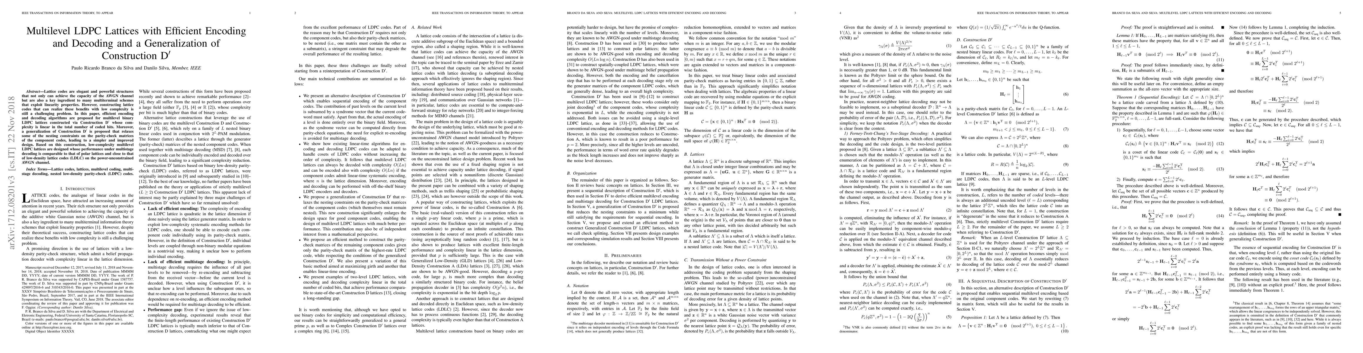 This paper proposes efficient encoding and decoding algorithms for multilevel binary LDPC lattices constructed via a generalized Construction D', achieving linear complexity. The generalization relaxes nesting constraints, resulting in simpler and improved designs with performance comparable to polar lattices and low-density lattice codes on the AWGN channel.