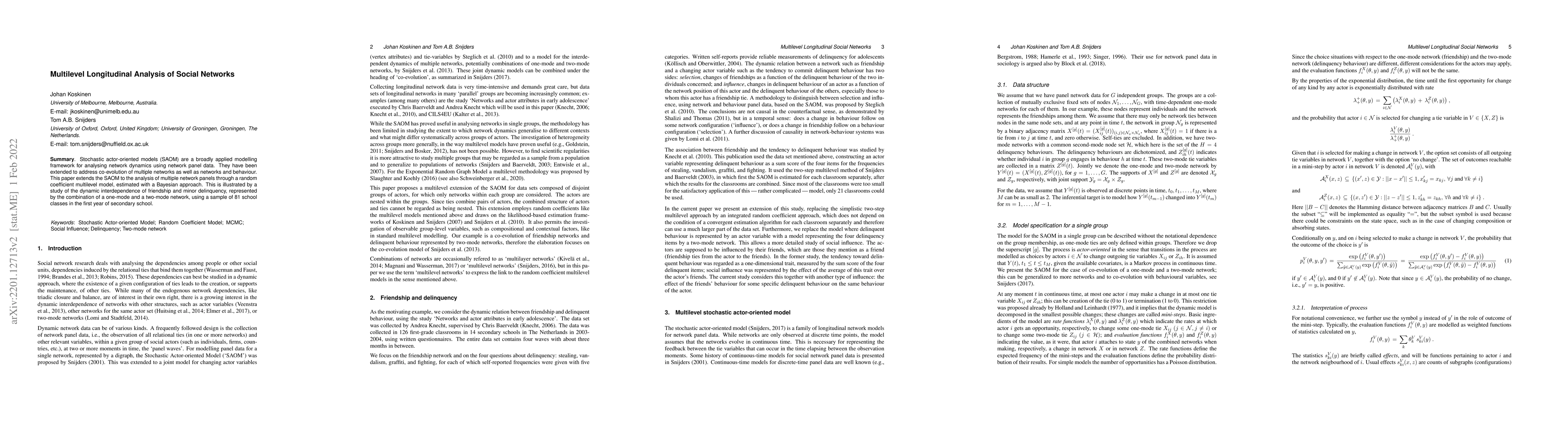 Stochastic actor-oriented models (SAOM) are a broadly applied modelling framework for analysing network dynamics using network panel data. They have been extended to address co-evolution of multiple networks as well as networks and behaviour. This paper extends the SAOM to the analysis of multiple network panels through a random coefficient multilevel model, estimated with a Bayesian approach. This is illustrated by a study of the dynamic interdependence of friendship and minor delinquency, represented by the combination of a one-mode and a two-mode network, using a sample of 81 school classes in the first year of secondary school.
