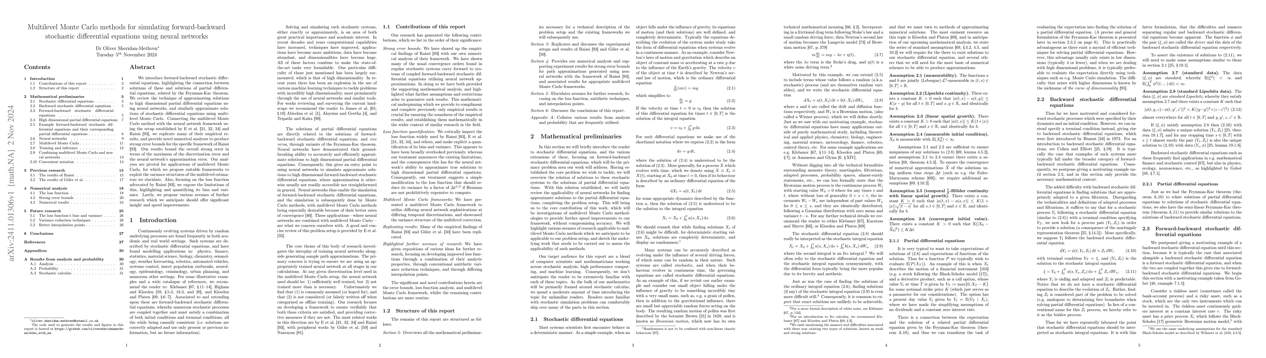 We introduce forward-backward stochastic differential equations, highlighting the connection between solutions of these and solutions of partial differential equations, related by the Feynman-Kac theorem. We review the technique of approximating solutions to high dimensional partial differential equations using neural networks, and similarly approximate solutions of stochastic differential equations using multilevel Monte Carlo. Connecting the multilevel Monte Carlo method with the neural network framework using the setup established by E et al. and Raissi, we replicate many of their empirical results, and provide novel numerical analyses to produce strong error bounds for the specific framework of Raissi. Our results bound the overall strong error in terms of the maximum of the discretisation error and the neural network's approximation error. Our analyses are pivotal for applications of multilevel Monte Carlo, for which we propose suitable frameworks to exploit the variance structures of the multilevel estimators we elucidate. Also, focusing on the loss function advocated by Raissi, we expose the limitations of this, highlighting and quantifying its bias and variance. Lastly, we propose various avenues of further research which we anticipate should offer significant insight and speed improvements.