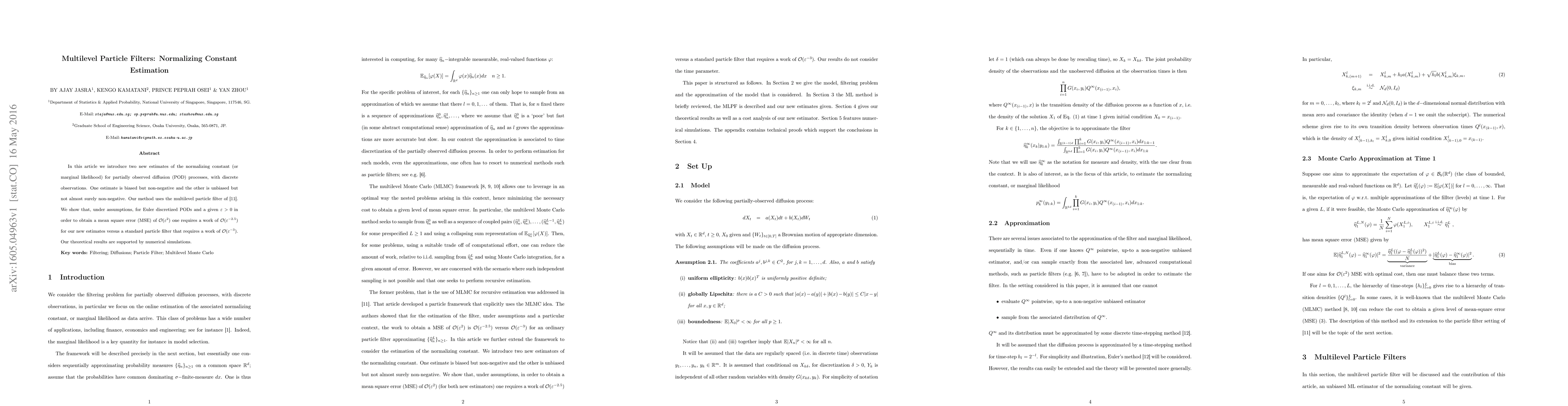 New particle filter estimates normalizing constants for partially observed diffusion processes with improved efficiency, requiring less computational work than traditional methods.