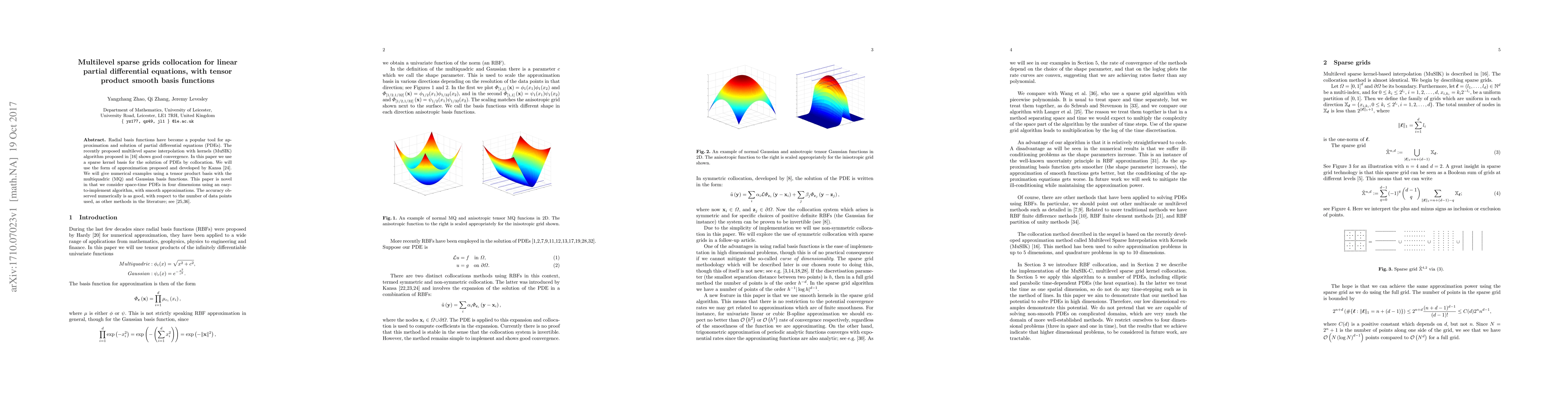 Radial basis functions have become a popular tool for approximation and solution of partial differential equations (PDEs). The recently proposed multilevel sparse interpolation with kernels (MuSIK) algorithm proposed in \cite{Georgoulis} shows good convergence. In this paper we use a sparse kernel basis for the solution of PDEs by collocation. We will use the form of approximation proposed and developed by Kansa \cite{Kansa1986}. We will give numerical examples using a tensor product basis with the multiquadric (MQ) and Gaussian basis functions. This paper is novel in that we consider space-time PDEs in four dimensions using an easy-to-implement algorithm, with smooth approximations. The accuracy observed numerically is as good, with respect to the number of data points used, as other methods in the literature; see \cite{Langer1,Wang1}.