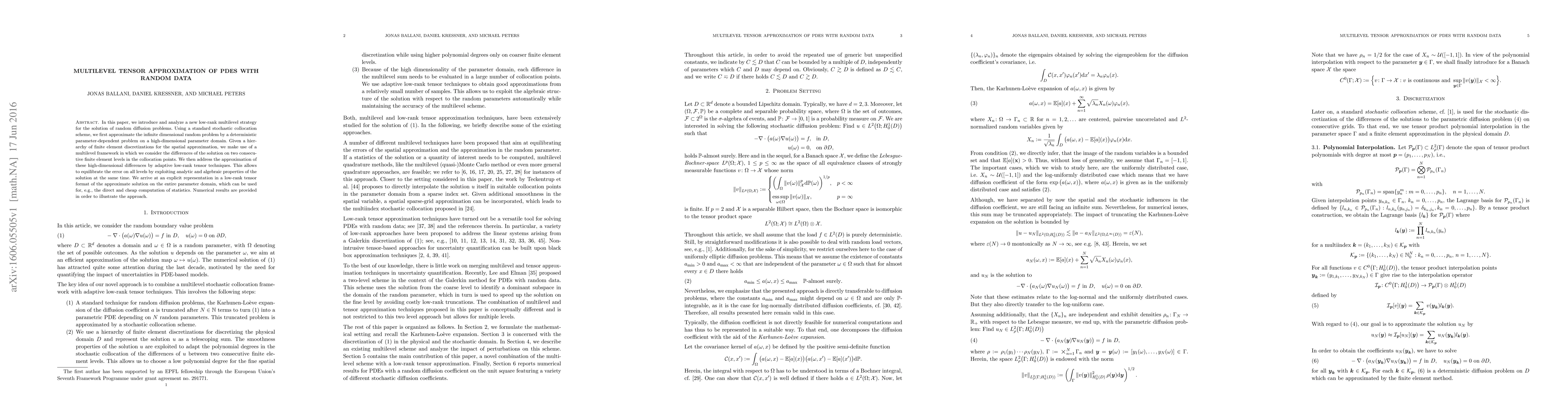 In this paper, we introduce and analyze a new low-rank multilevel strategy for the solution of random diffusion problems. Using a standard stochastic collocation scheme, we first approximate the infinite dimensional random problem by a deterministic parameter-dependent problem on a high-dimensional parameter domain. Given a hierarchy of finite element discretizations for the spatial approximation, we make use of a multilevel framework in which we consider the differences of the solution on two consecutive finite element levels in the collocation points. We then address the approximation of these high-dimensional differences by adaptive low-rank tensor techniques. This allows to equilibrate the error on all levels by exploiting analytic and algebraic properties of the solution at the same time. We arrive at an explicit representation in a low-rank tensor format of the approximate solution on the entire parameter domain, which can be used for, e.g., the direct and cheap computation of statistics. Numerical results are provided in order to illustrate the approach.