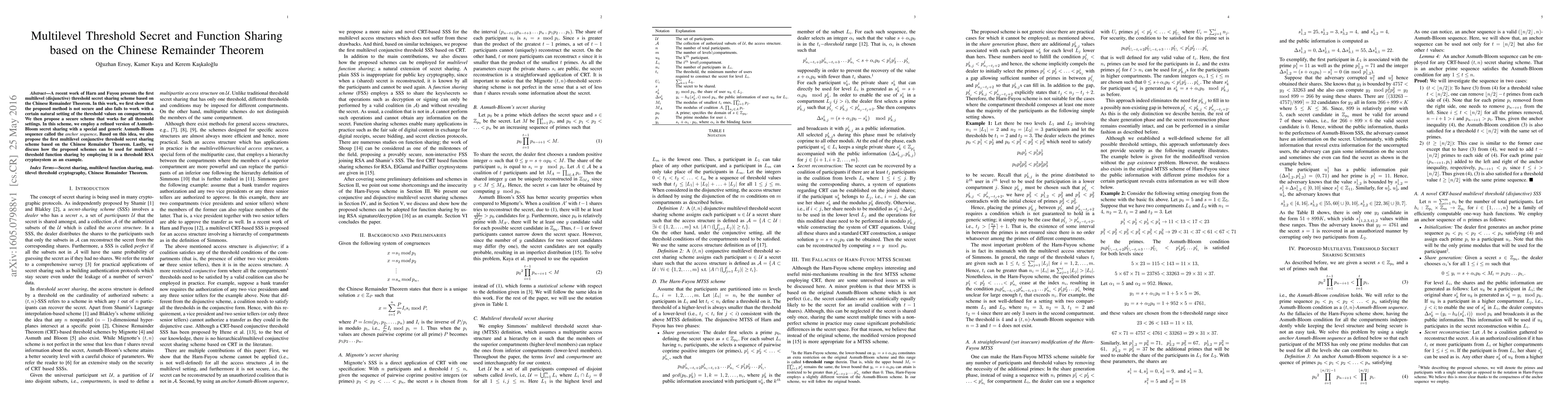 This paper critiques a previous multilevel threshold secret sharing scheme based on the Chinese Remainder Theorem, demonstrating its insecurity and functional failures. It proposes a secure alternative using a refined Asmuth-Bloom method with an "anchor sequence" and introduces the first multilevel conjunctive threshold secret sharing scheme. The paper also explores its application in multilevel threshold function sharing via a threshold RSA cryptosystem.