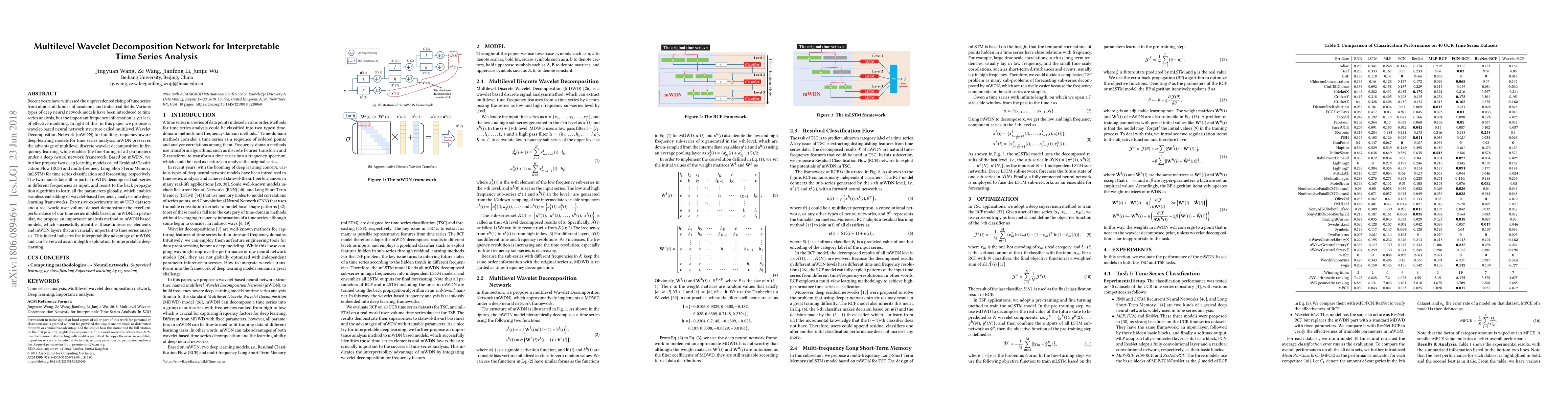 This paper introduces a multilevel Wavelet Decomposition Network (mWDN) that combines wavelet decomposition with deep learning for frequency-aware time series analysis. The proposed mWDN, along with Residual Classification Flow (RCF) and multi-frequency Long Short-Term Memory (mLSTM) models, demonstrates superior performance on various datasets and provides interpretability through an importance analysis method.