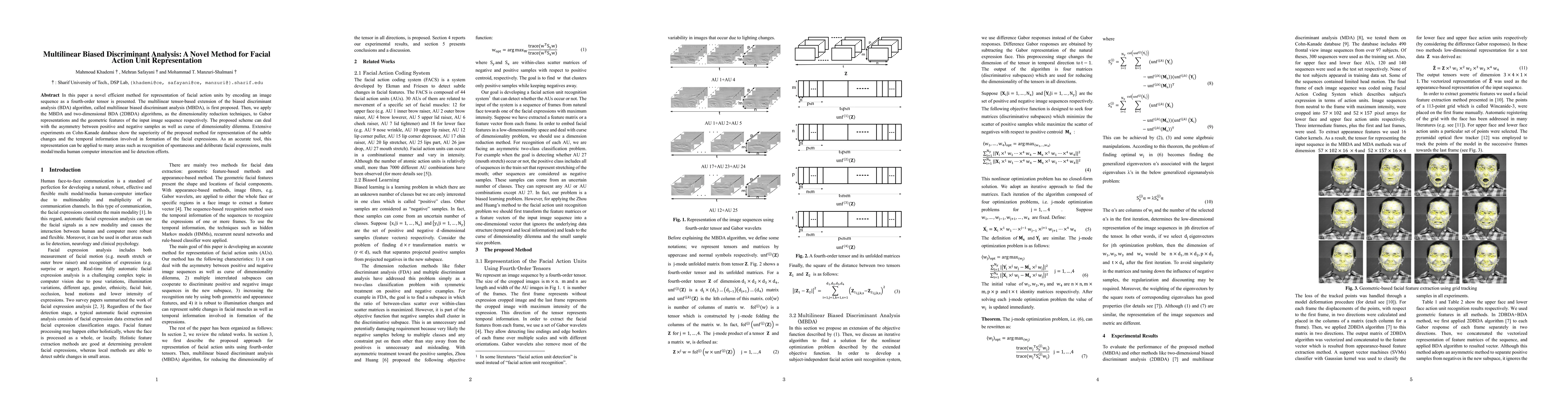 The paper introduces multilinear biased discriminant analysis (MBDA), a novel tensor-based method for encoding and representing facial action units from image sequences. MBDA is shown to outperform traditional dimensionality reduction techniques in representing subtle changes and temporal information in facial expressions, with applications in emotion recognition, human-computer interaction, and lie detection.