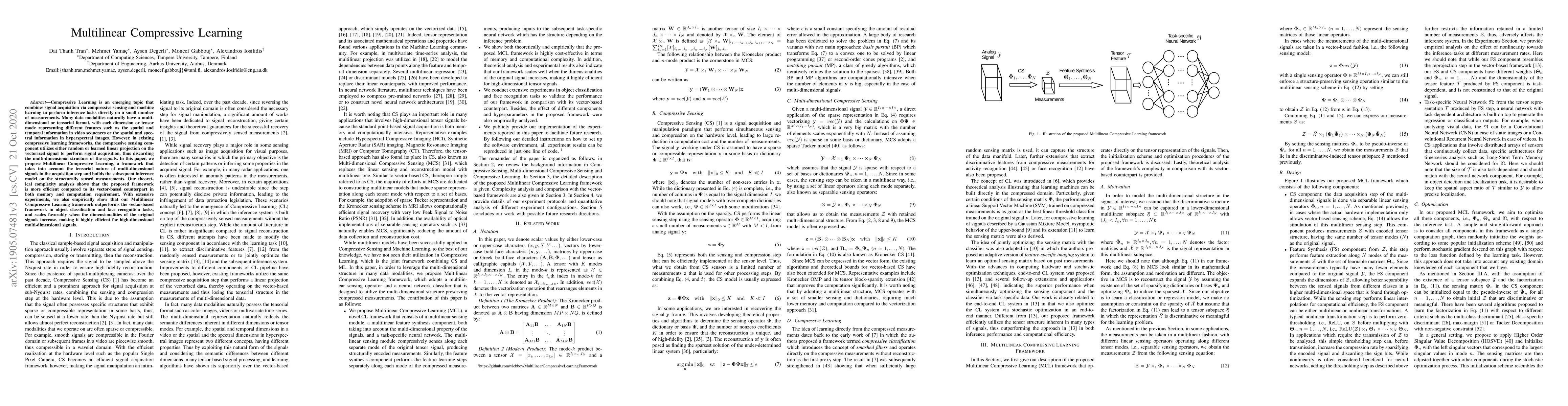 This paper introduces Multilinear Compressive Learning, a framework that leverages the tensorial structure of multi-dimensional signals during acquisition, surpassing traditional linear compressive sensing methods. The proposed framework demonstrates superior efficiency and performance in tasks like object classification and face recognition, especially for high-dimensional data.